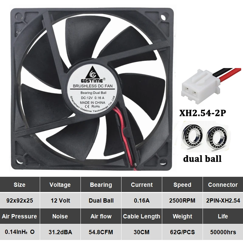 5 шт. Gdstime DC 12 В 2Pin 92 мм 92x92x25 мм шарикоподшипник компью...