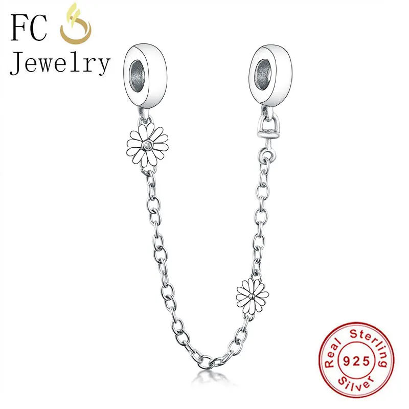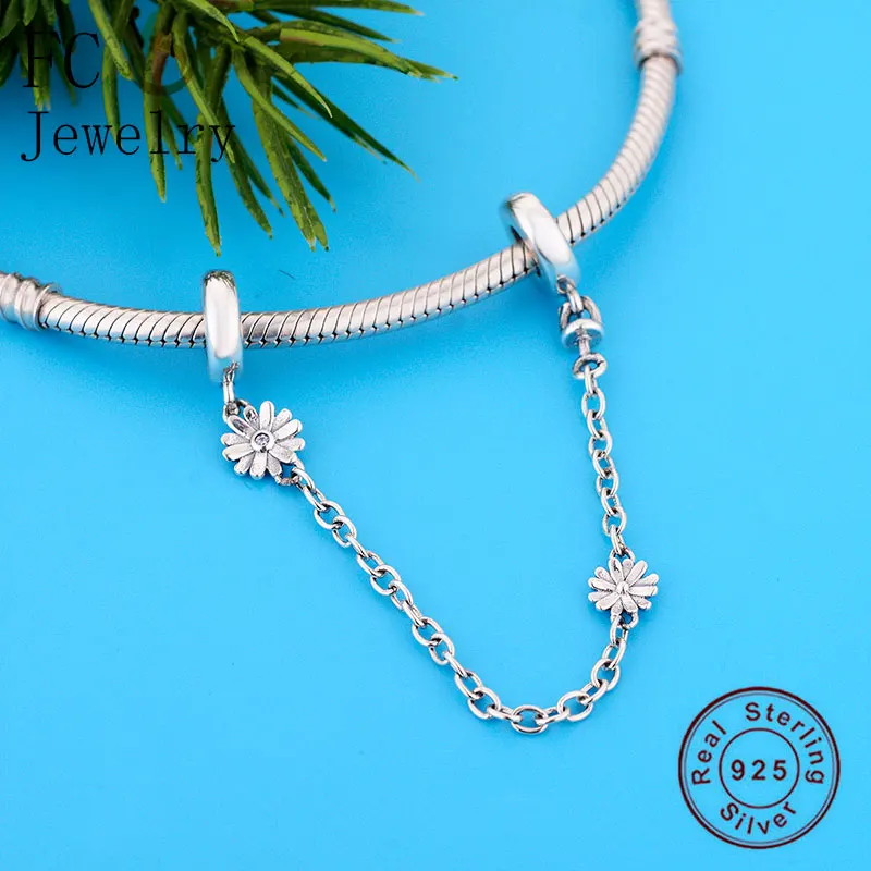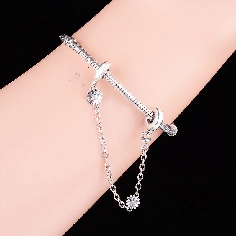 Шарм-браслет из серебра 925 пробы с бусинами в виде маргариток