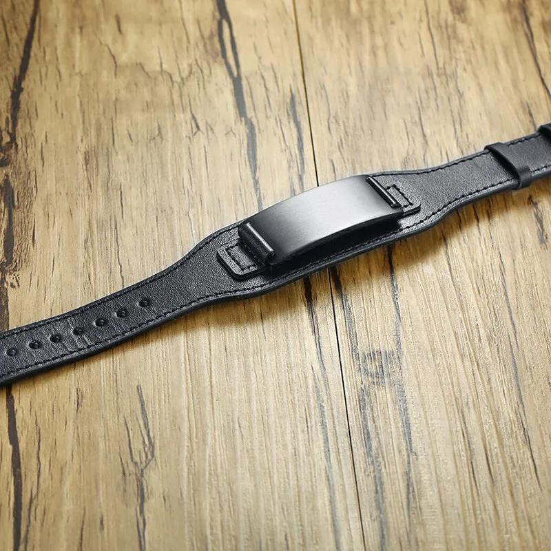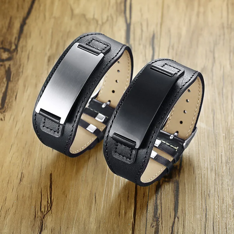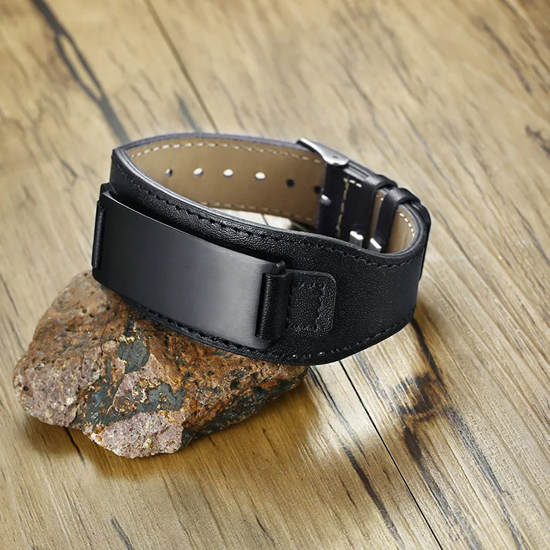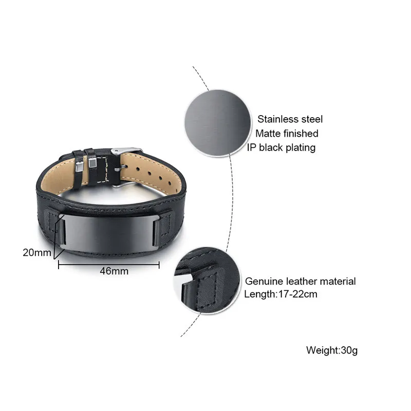Новинка 2022, модный винтажный мужской браслет с бирками из нержавеющей стали черного и белого цвета в стиле панк, мужские ювелирные изделия из натуральной кожи