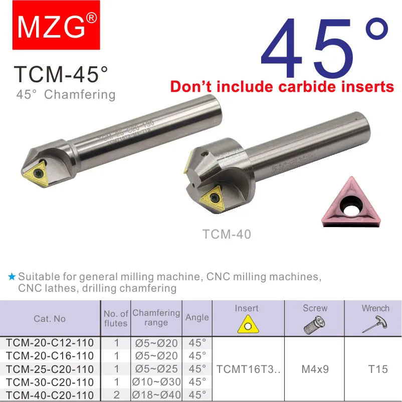Токарный станок с ЧПУ MZG TCM, фреза из вольфрамовой стали, 45 градусов, 121620 мм, твердосплавные вставки TCMT, Концевая фреза Инструменты для снятия фаски