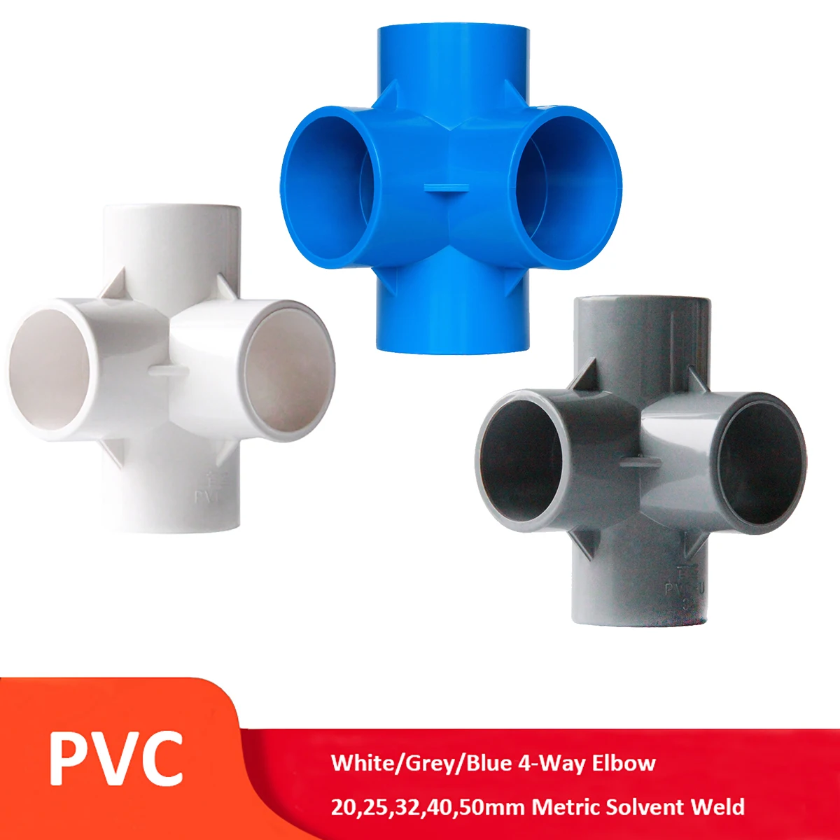 ПВХ 4-ходовой колено 20 мм, 25 мм, 32 мм, 40 мм, 50 мм метрический растворитель сварной напорной трубы соединитель трубы Аквариум Пруд бассейн Сад DIY