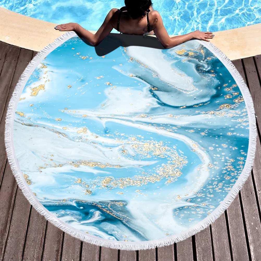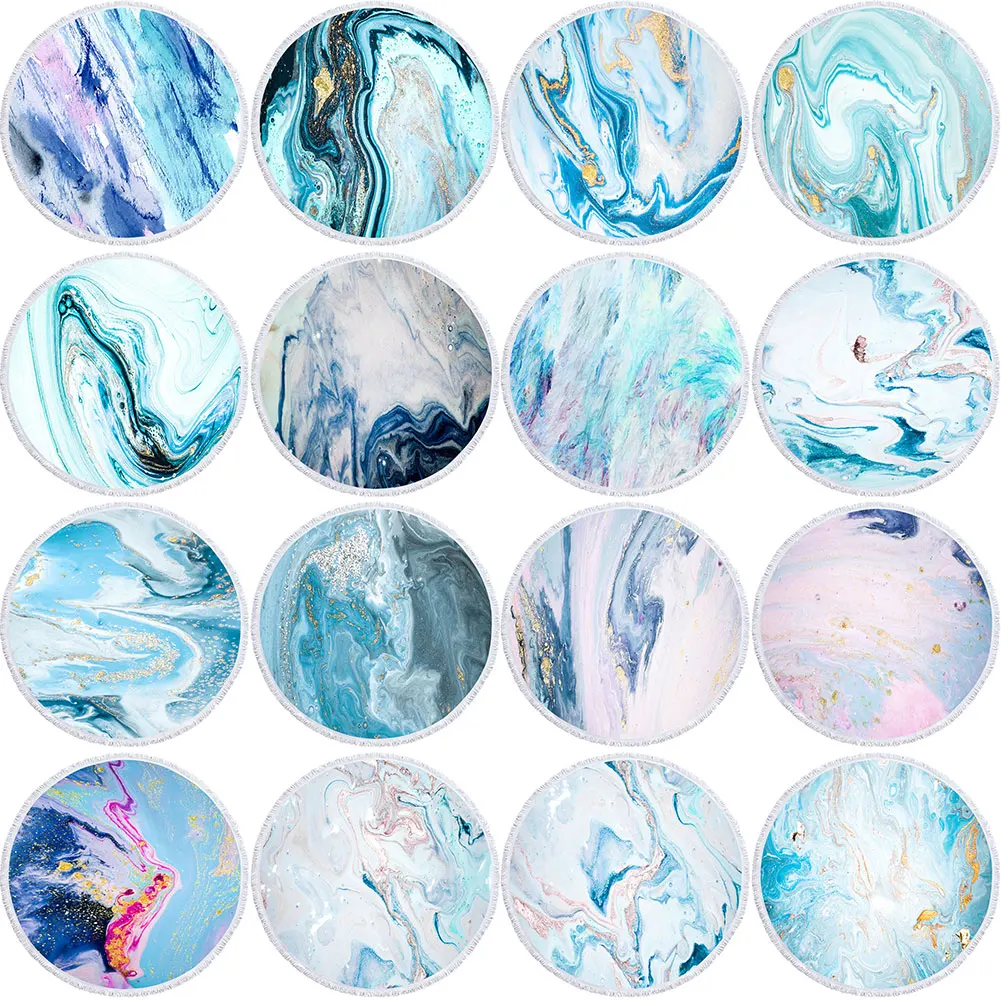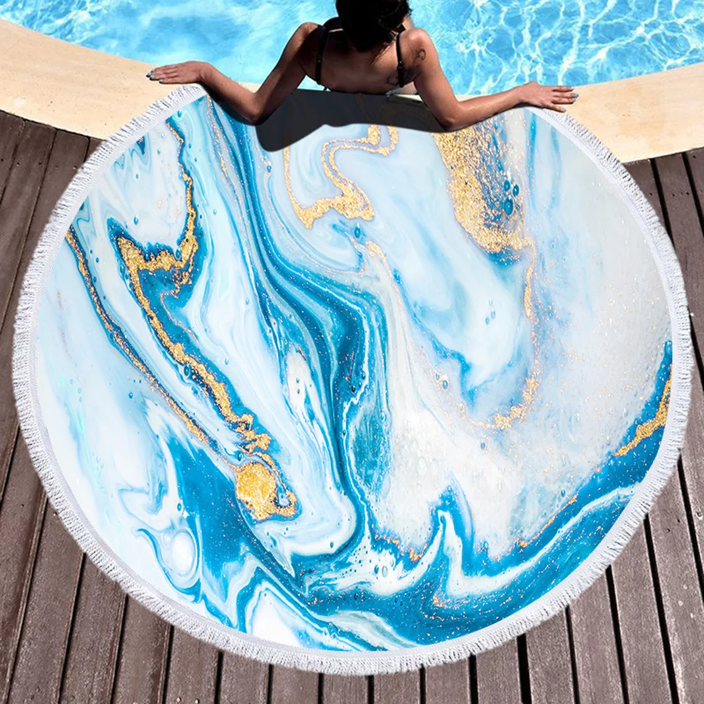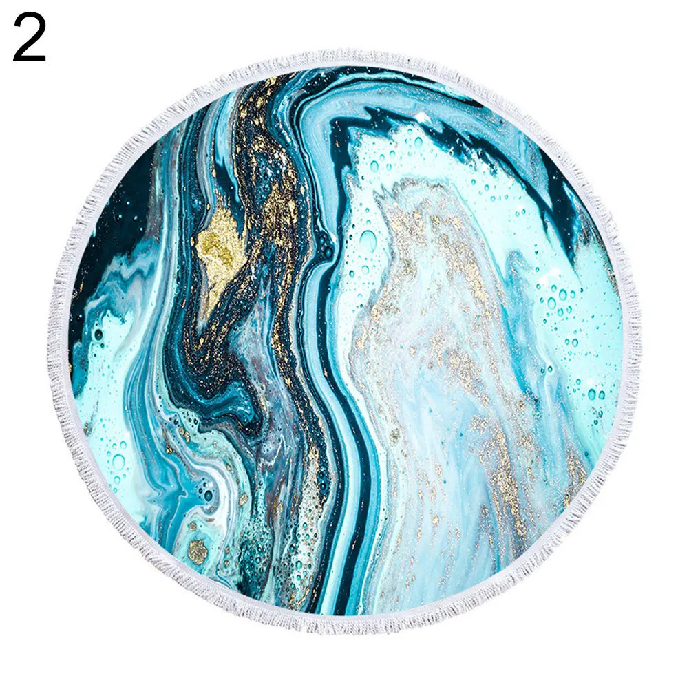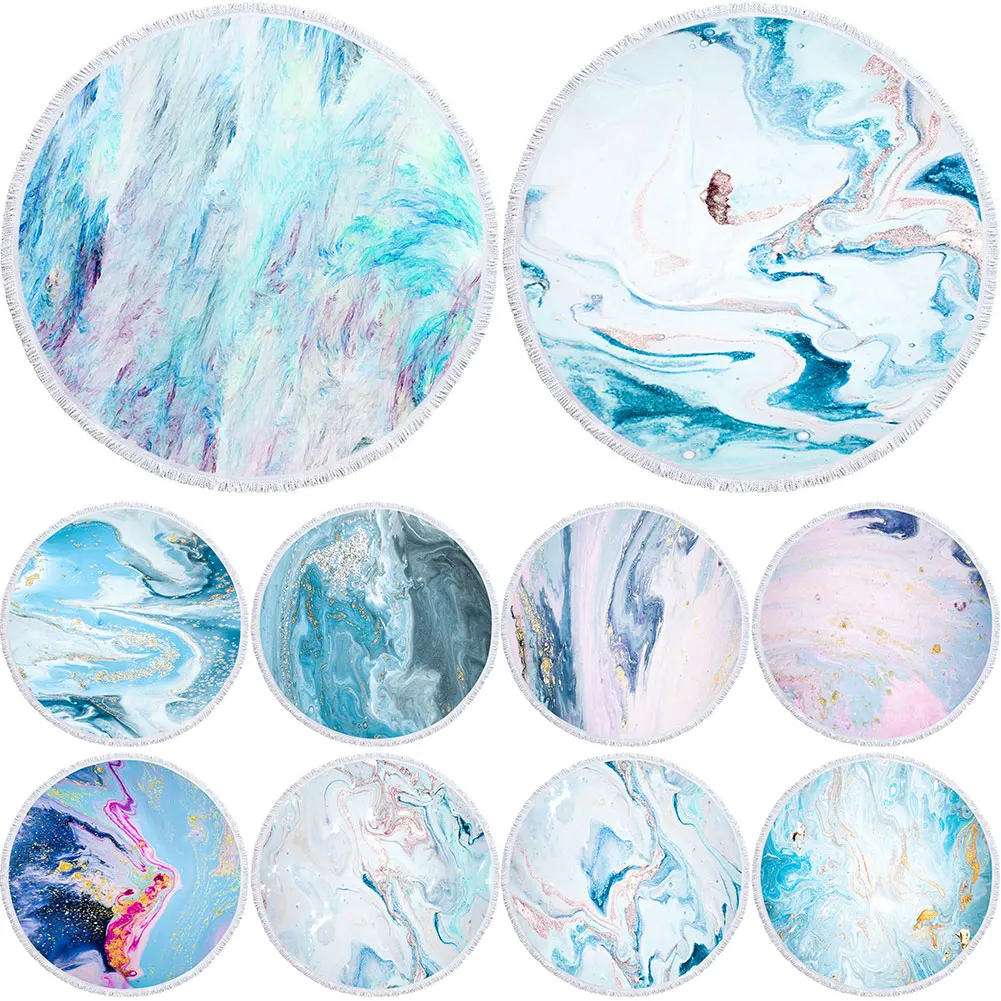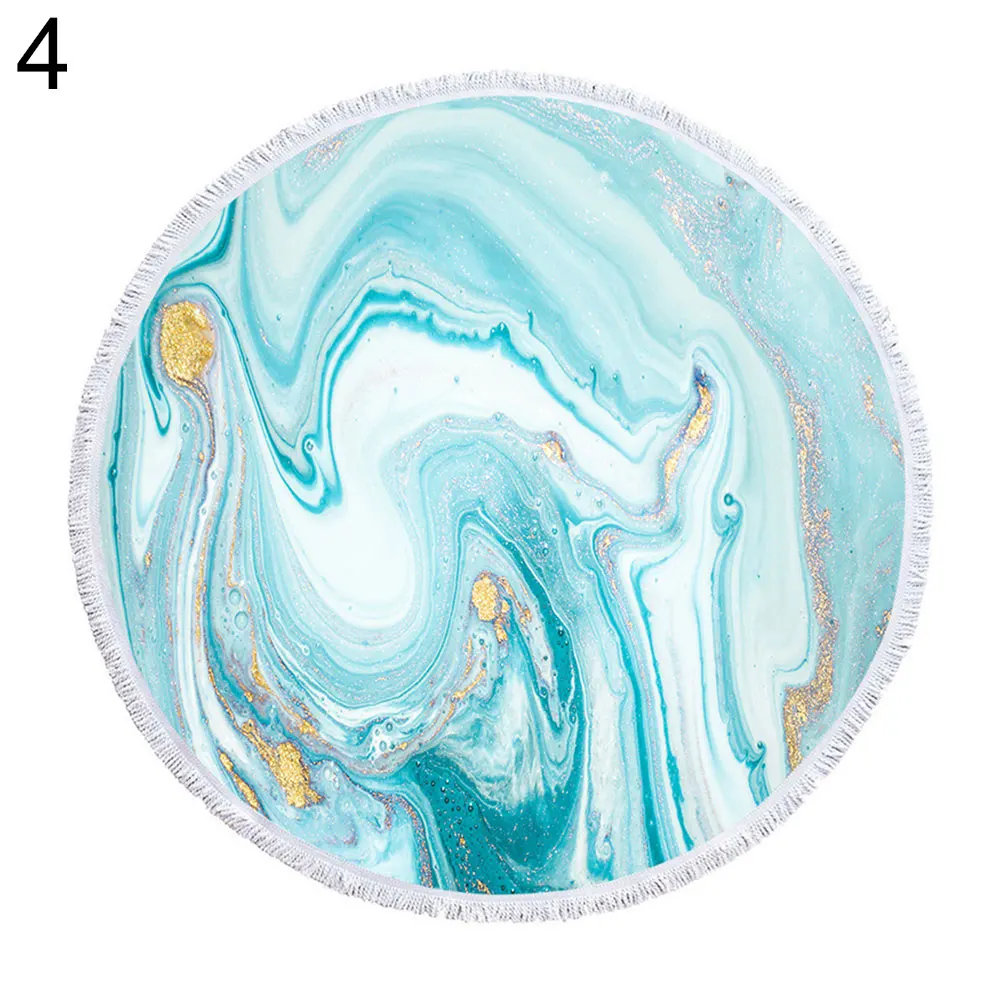 Модное круглое пляжное полотенце с мраморным принтом, с кисточками, для улицы, для лета, для пляжа, коврик-шарф