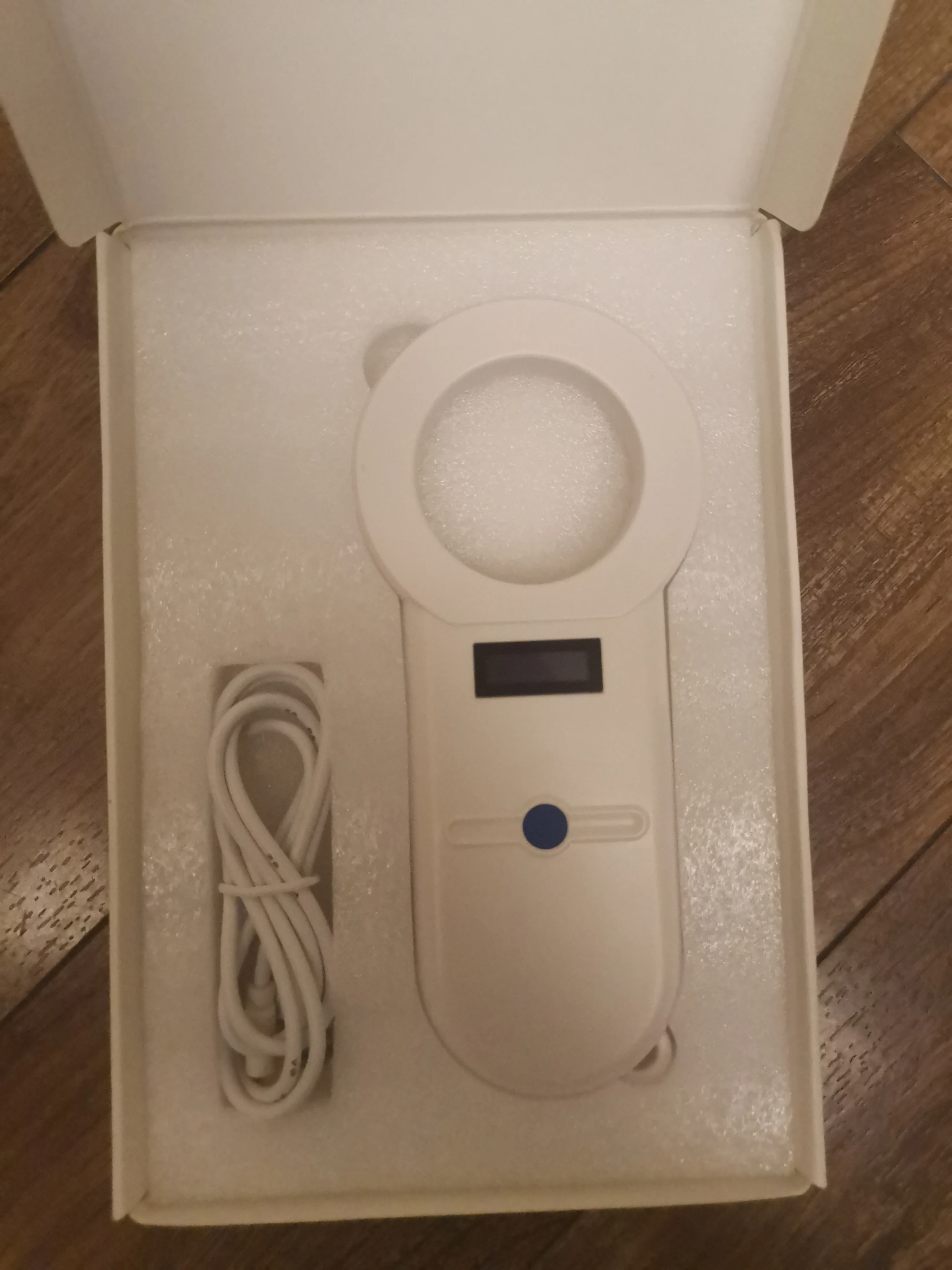 Расстояние считывания ушной бирки составляет 20-22 см, а расстояние считывания стеклянной трубки-10-15 см (в зависимости от размера чипа)