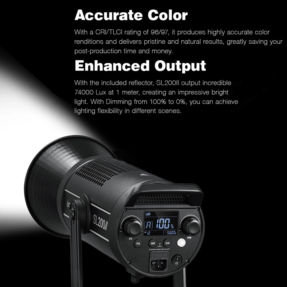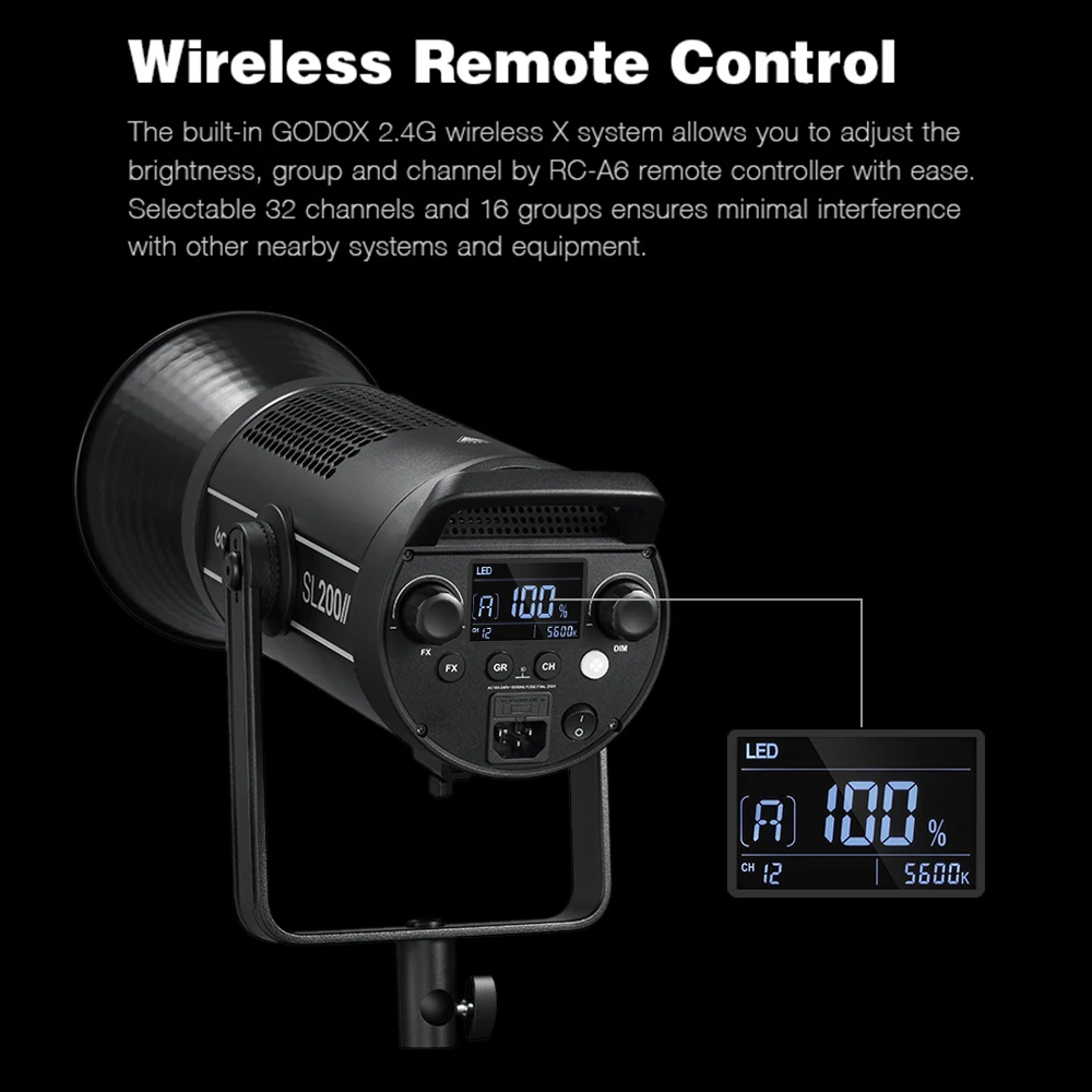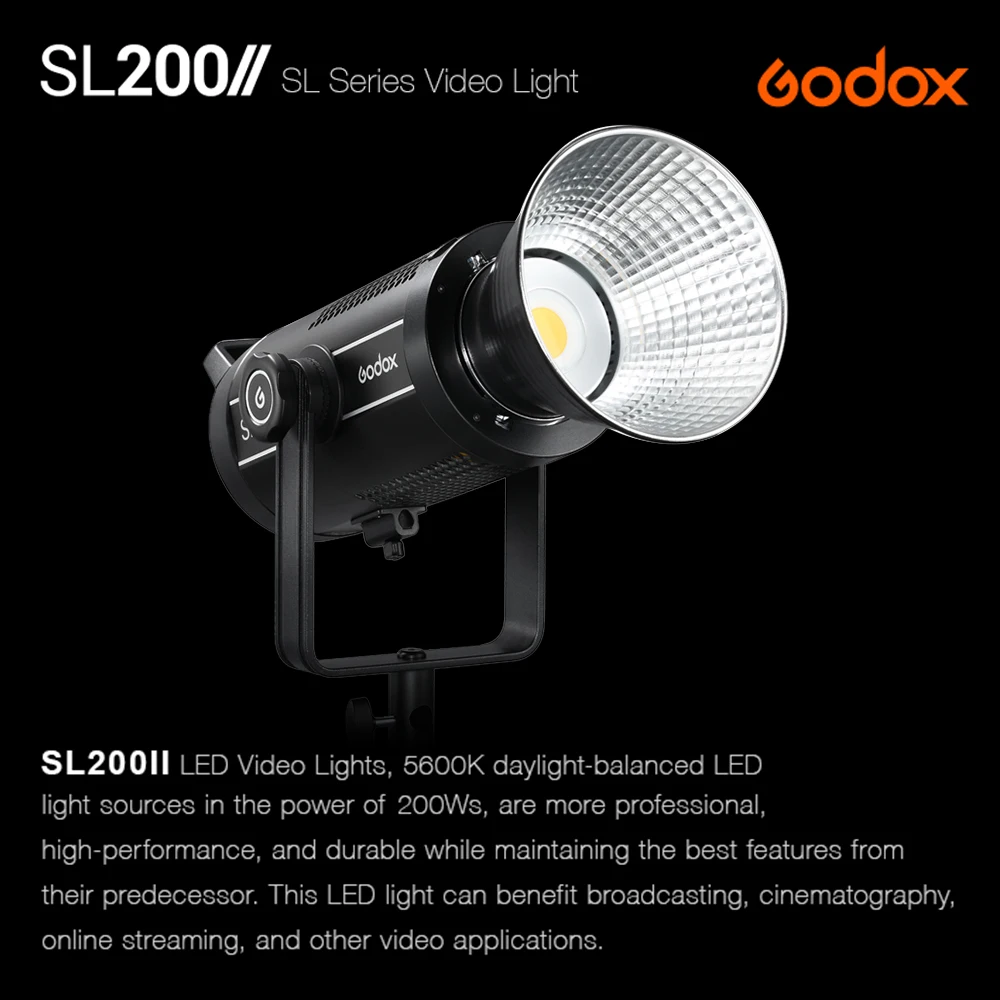 Светодиодная лампа для видеосъемки Godox SL200II SL-200W II 200W Bowens, дневной свет, сбалансированный 5600K 2,4G, беспроводная система X для интервью
