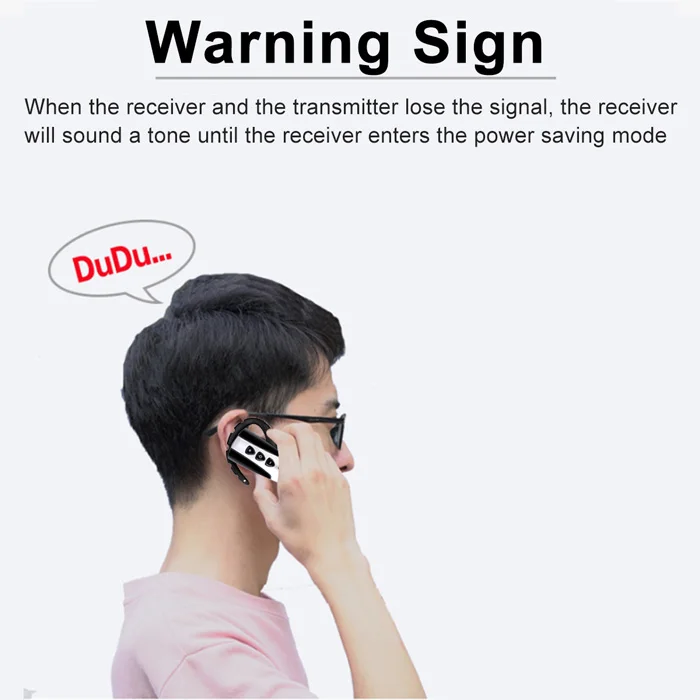4.Предупреждающий знак:Когда приемник и передатчик теряют сигнал, приемник будет звучать тональный сигнал до тех пор, пока приемник не перейдет в энергосберегающий режим.