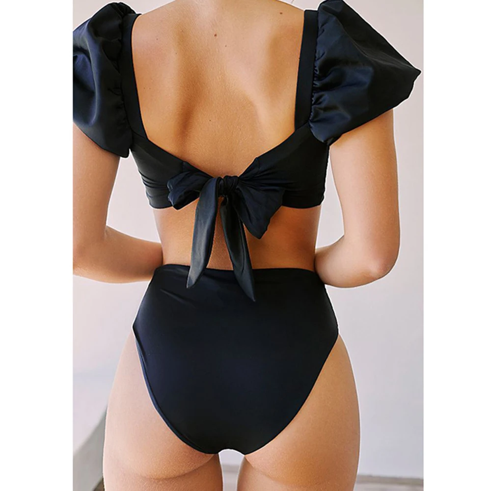 Женский раздельный купальник, пикантный пляжный комплект бикини с пышными рукавами и высокой талией, с коротким рукавом, 2021