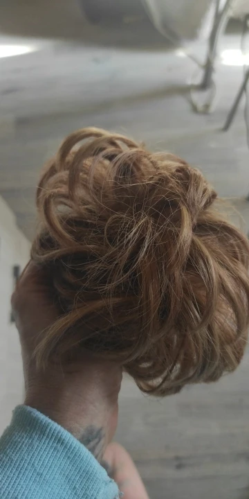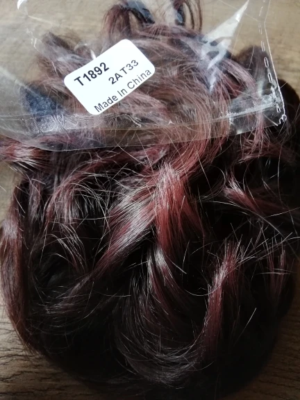 Купила уже штук 7 разных шиньонов, и только этот наконец-то в точности подошёл к моему цвету волос. Один минус: он оооочень скользкий. Даже несколько невидимок и шпилек всё равно его не удерживают, и он уже через час начинает сползать. При этом сами волосы внешне выглядят вполне натурально. Непонятно, в общем, из какого материала они сделаны, но скользкие просто ужас какие