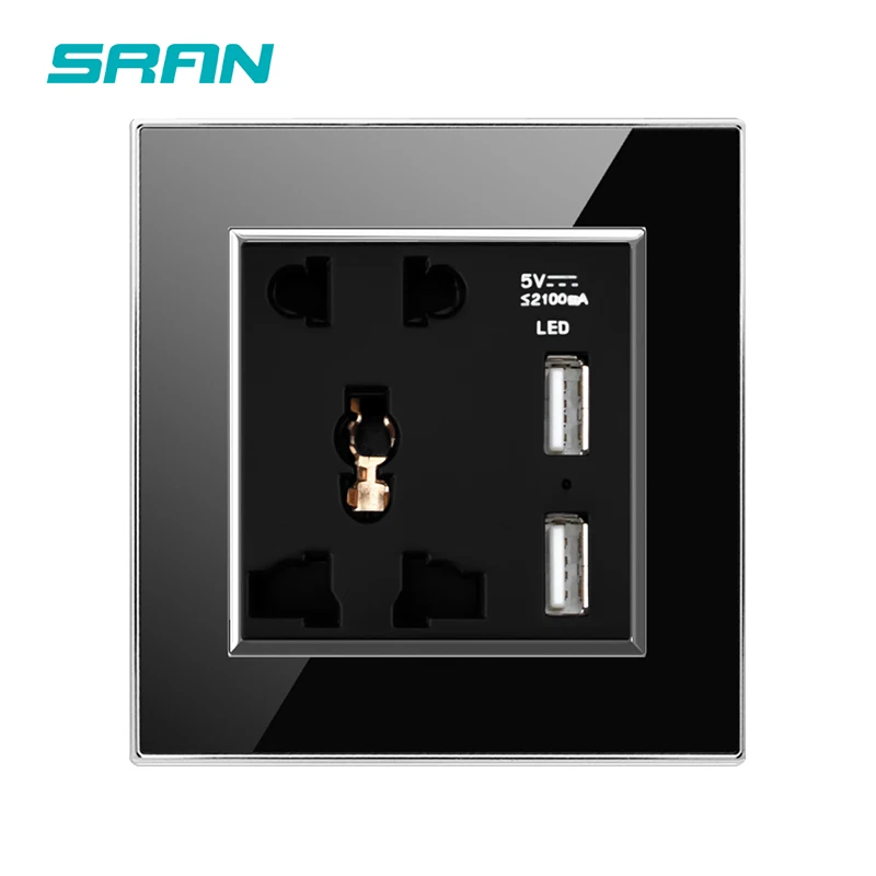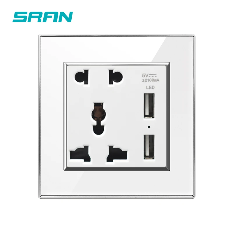 Настенная розетка SRAN с двумя USB-портами для зарядки, 5 В, 2,1 А