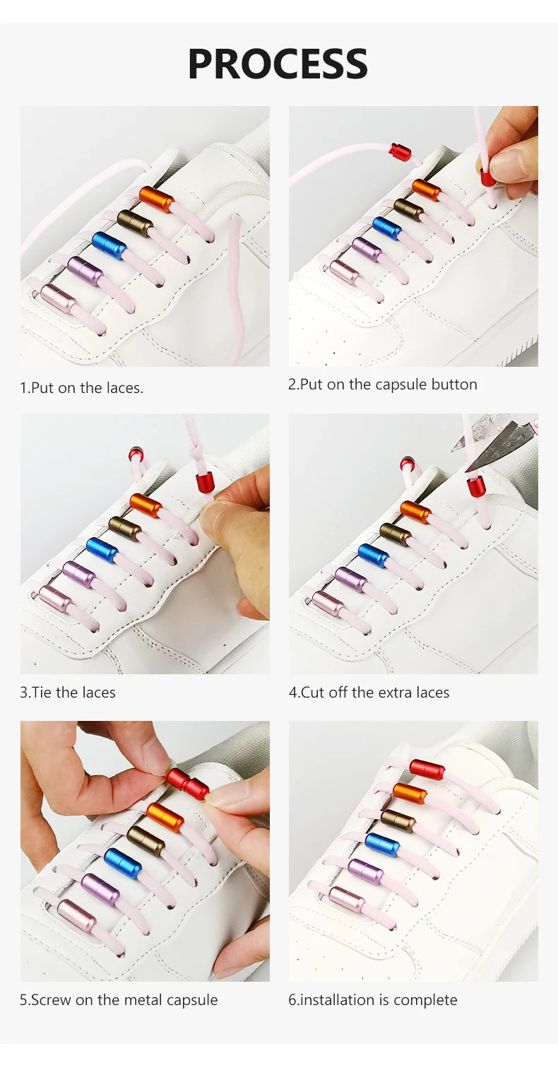 Шнурки круглые эластичные без завязывания для обуви, 1 пара
