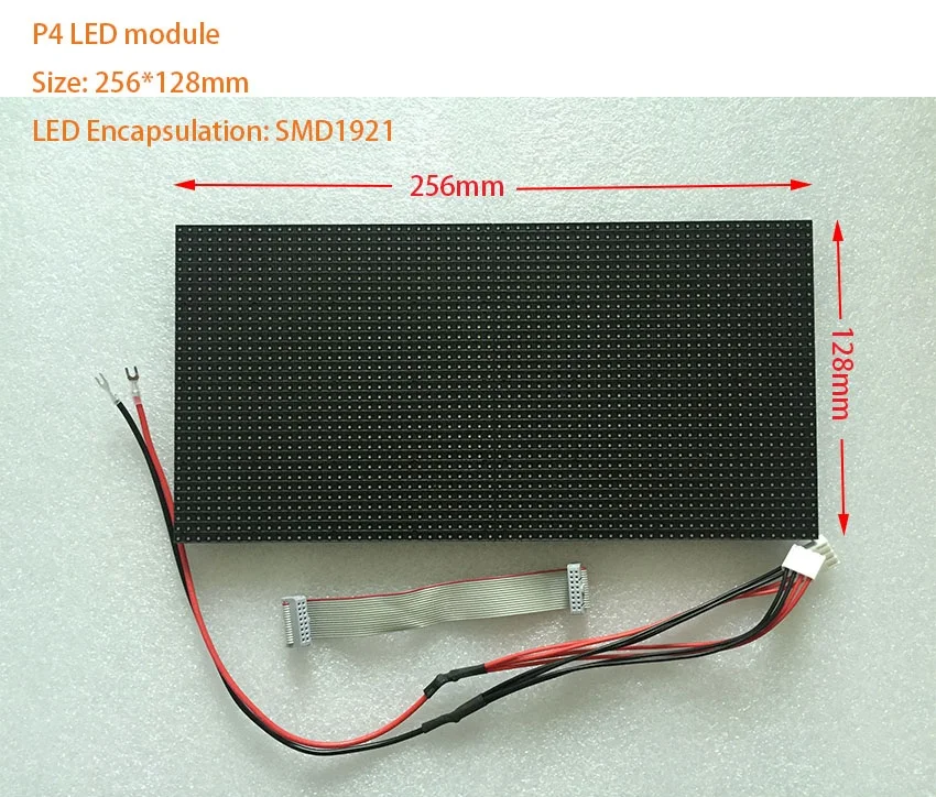 Шаг: 4 мм Плотность: 62500dot/sqm Светодиодный Инкапсуляция: SMD1921 Размер модуля: 256*128 мм Разрешение модуля: 64*32 пикселей Метод привода: 1/8 сканирование Цвет: полный цвет Яркость: ≥6500cd/sqm Серый сканирование: ≥ 4096 Угол обзора: 140/140 Рабочее напряжение: DC5V Срок службы: 100000 часов Уровень защиты: IP65 Гарантия: 3 года Система управления: LINSN/ZDEC/DBSTAR/NOVA.COLORLIGHT