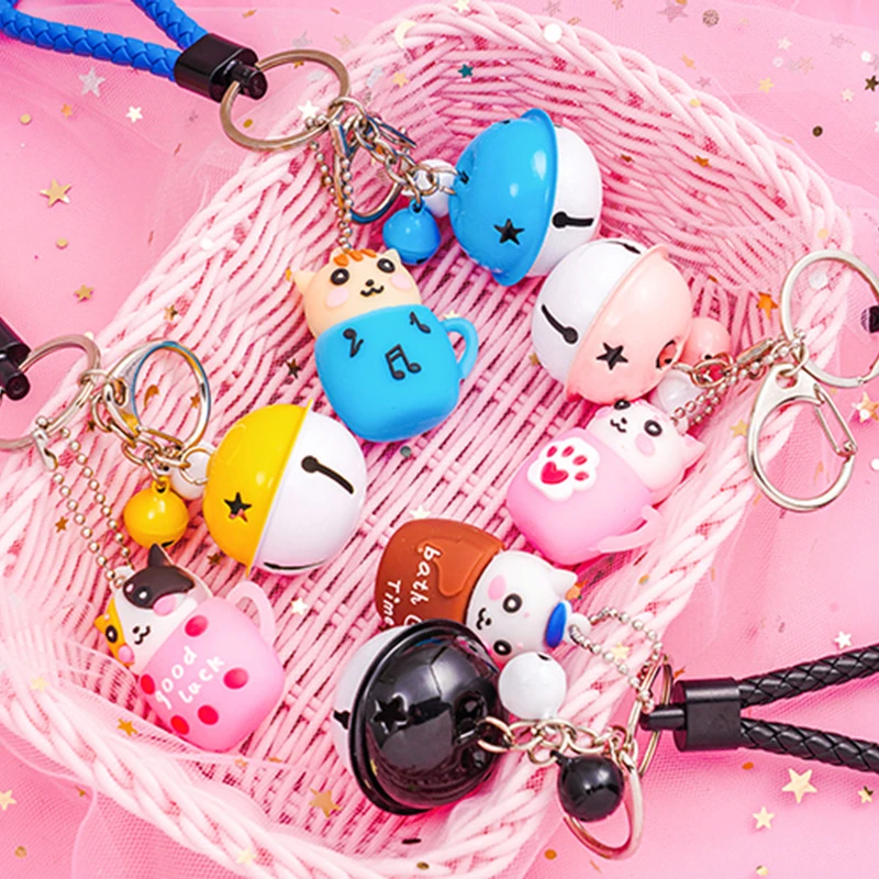 Новинка, модный брелок для ключей, кольцо с милым мультяшным рисунком, кошка, колокольчик, закуска, автомобиль, милая сумка, буквы, полимерный брелок