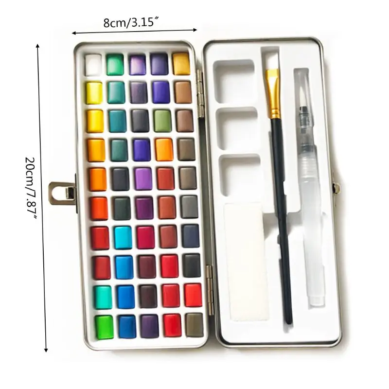 Набор однотонных акварельных красок, 50 цветов, портативная металли...