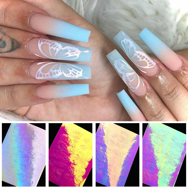 16 шт лазерная красочная наклейка для ногтей 3d бабочка огненный лист голографические наклейки из фольги для ногтей наклейки DIY блестящие украшения