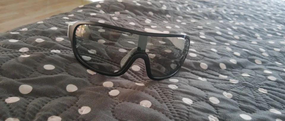 Отличные очки, есть немного следов от формовки, немного не точно совпадает линза с прорезью под него. Есть небольшое поскрипывание, что не всех устроит. Качество самой линзы вменяемое. Вечером вполне видно дорогу, солнце не сильно их тонирует. Картинка на смарте не искажается — видно под разными углами. Другие поляризованные очки не позволяли видеть изображение в вертикальном положении аппарата на руле вела. Неплохая копия бренда POC.