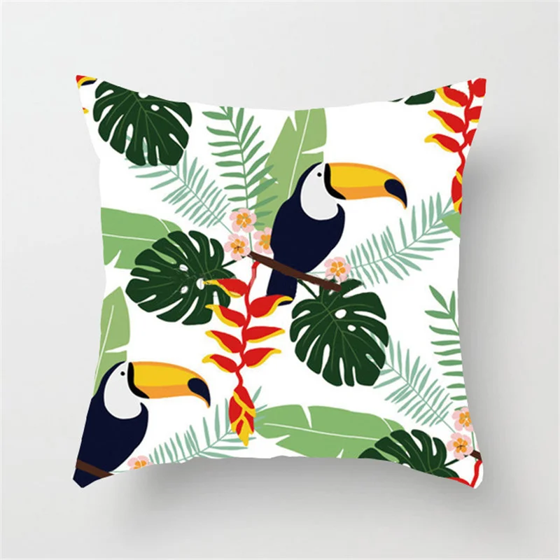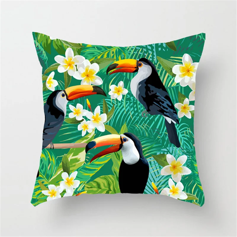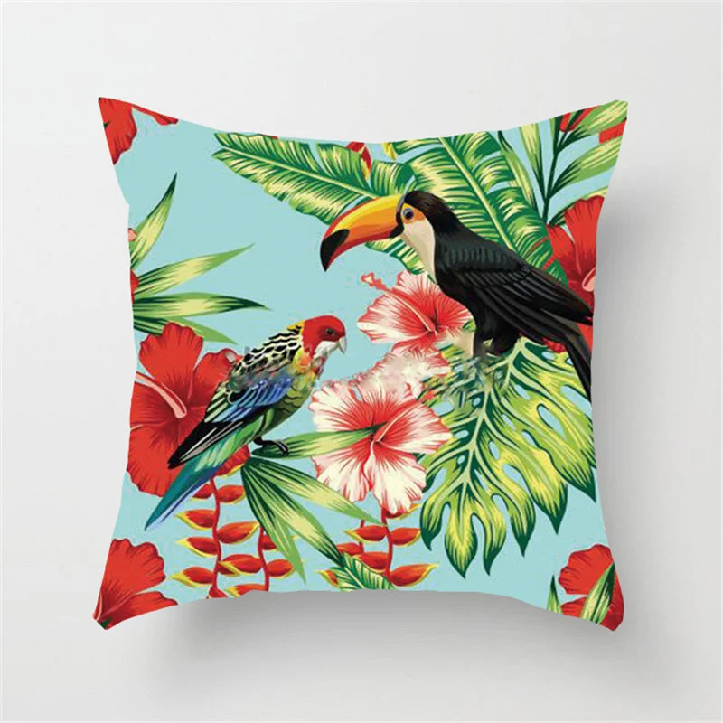 Тропические растения, попугай, Декоративная Подушка Наволочка, чехол для подушки из полиэстера, диванная подушка, декоративная наволочка для дивана, 40549