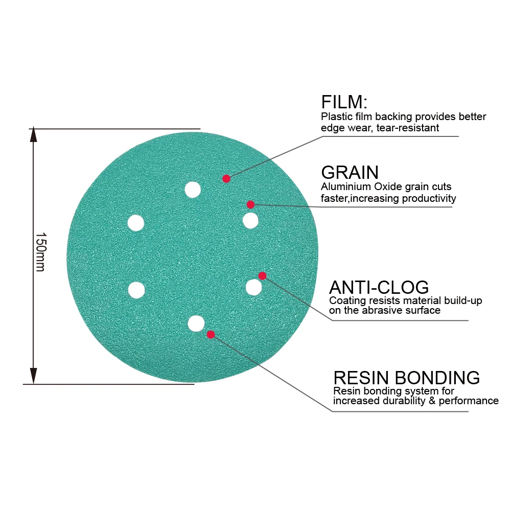 50 шт. 150 мм Профессиональный пленочный шлифовальный диск 6 "анти-засоры наждачная бумага Влажная и сухая крючок и петля абразивные инструменты с гранулами 60-400