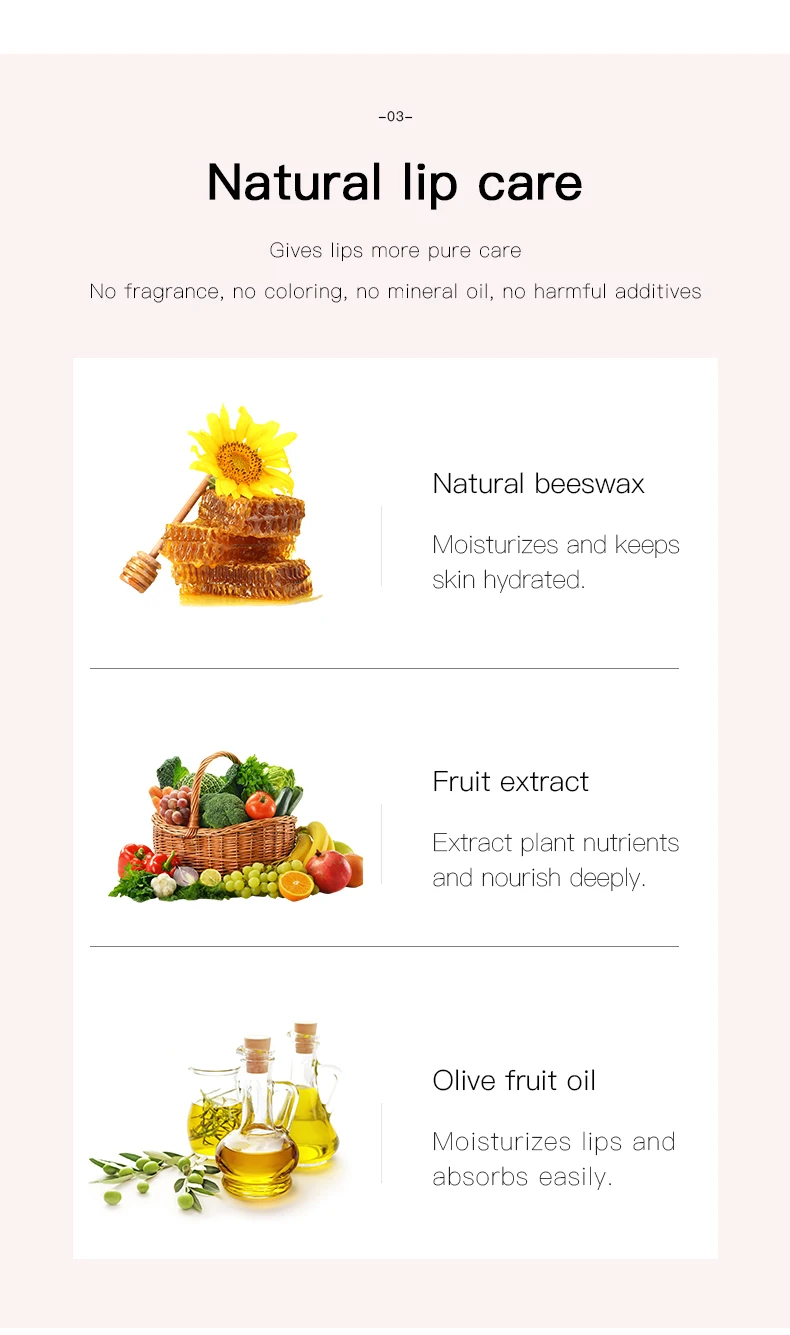 Помогает увлажнить губы, уменьшить потерю воды и сделать губы более здоровыми.