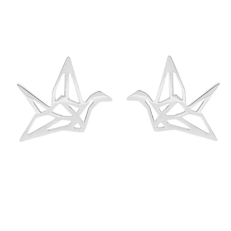 Cерьги Оригами журавль простой и изящный круглый вырез сделают вас более тысячи бумажных кранов необычные серьги-гвоздики, темпераментные ювелирные изделия Аксессуары подарок для женщин