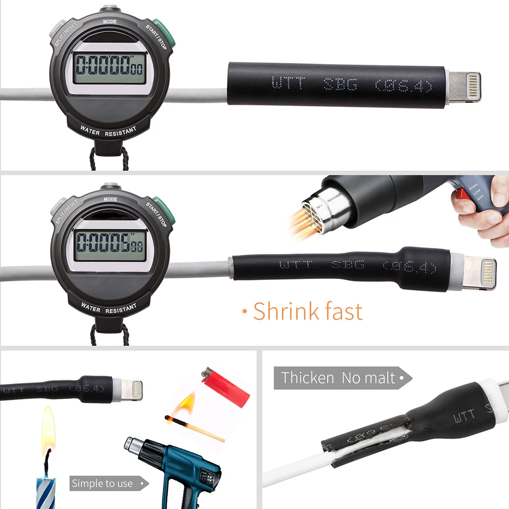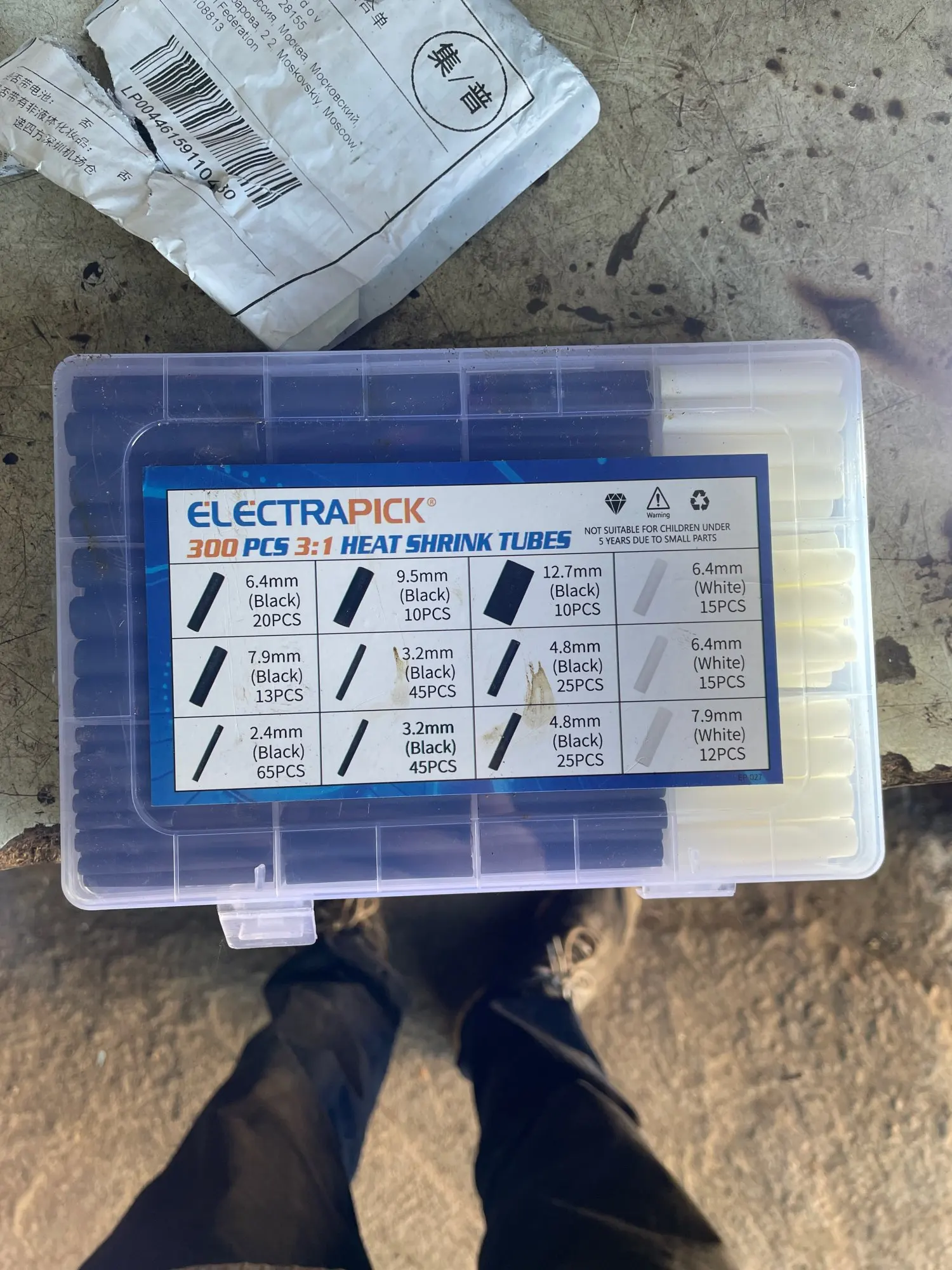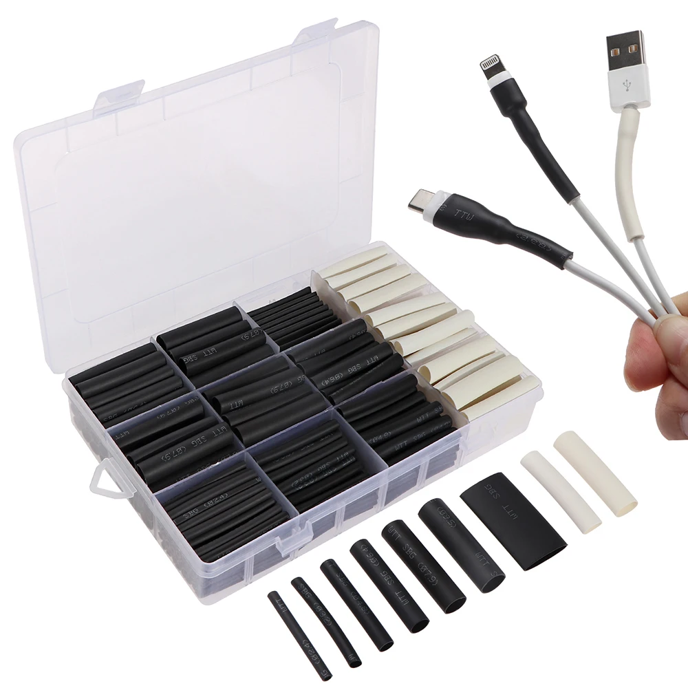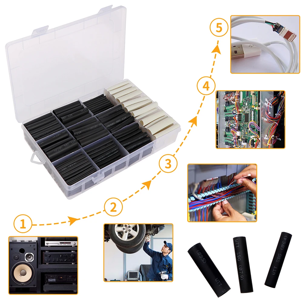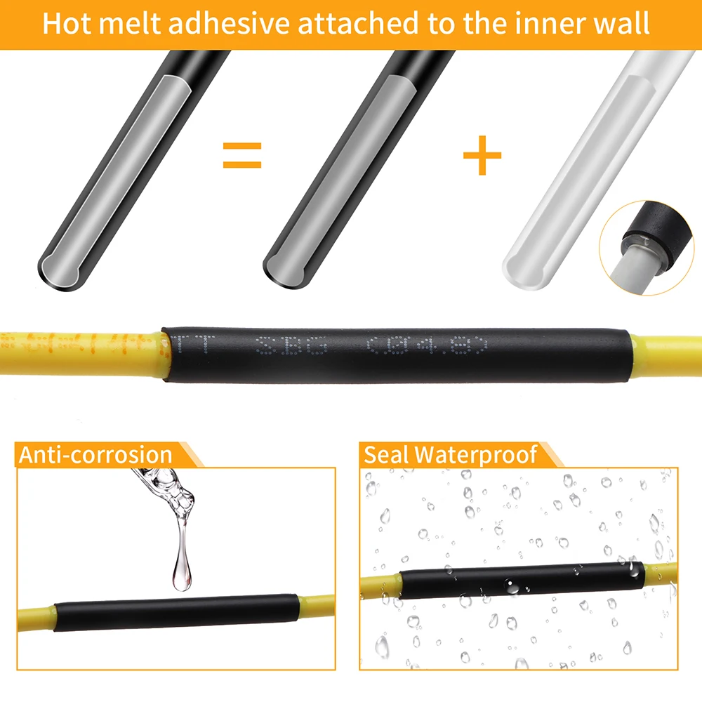 Набор термоусадочных трубок 3:1, 300 шт., с клеем, двойные стенки, диаметр 2,43,24,86,47,99,512,7 мм, с клейкой подкладкой, рукавная обертка