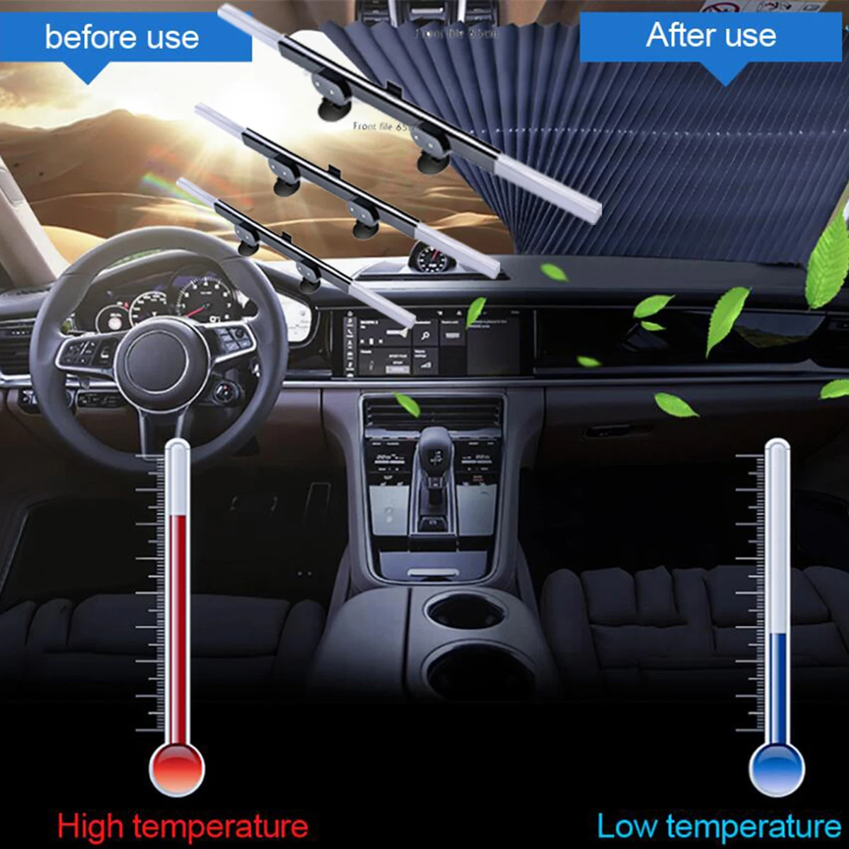 Высококачественная Светоотражающая алюминиевая пленка может блокировать тепло и 98% ультрафиолетовых лучей. Козырек лобового стекла автомобиля сохраняет прохладу автомобиля и Защищает приборную панель от повреждений, вызванных прямыми солнечными лучами. Это также может предотвратить нагревание руля и обжигание рук, а сиденье-от перегрева.