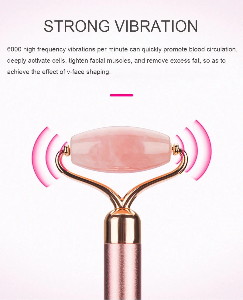 Электрический вибратор для лица Роуз нефрит ролик Подтяжка лица подтяжка кожи Антивозрастной для похудения гуаша нефрит камень инструмент для массажа красоты