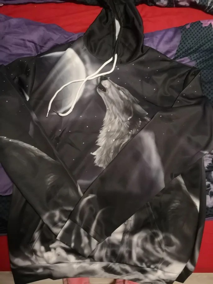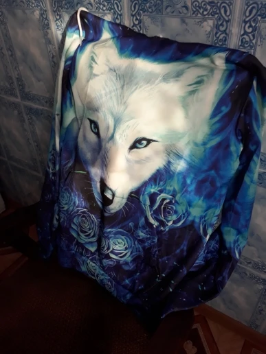 Хорошо получил синюю капюшонную толстовку с красивой белой головой волка в точности как на картинке Очень рад, спасибо