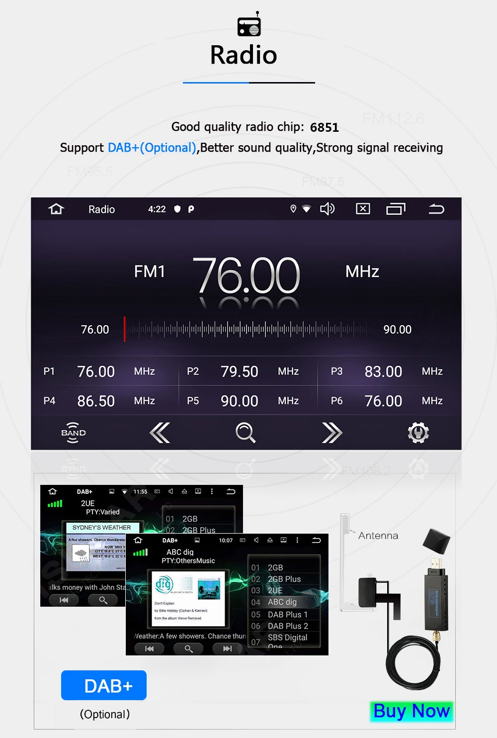 1. Подключение к Wi-Fi: Встроенный Wi-Fi модуль, может подключаться к Интернету через Wi-Fi hot spot, загрузить приложение для просмотра онлайн-ТВ, фильмов, общения с друзьями2.GPS-навигация: Встроенный навигационный модуль, Бесплатная навигационная карта (включая большинство стран), Поддержка многоязычного интерфейса/голосовой навигации3. Функция Bluetooth: Встроенный модуль bluetooth, поддержка подключения к телефону по bluetooth, громкая связь для звонков или воспроизведения музыки по bluetooth4. Функция зеркальной связи: плеер Android MP5 может зеркальная связь с телефоном Android с помощью USB-кабеля (телефонная связь IOS по Wi-Fi), вы можете коснуться экрана MP5, чтобы управлять телефоном AndroidТелефон IOS не может работать с сенсорным экраном MP5 (подходит не для всех телефонов)5. Функция входа DVR: Поддержка USB-входа для внешнего регистратора (DVR) (только для DVR с приложением), вы можете управлять DVR с помощью приложения6. Функция заднего вида: Поддержка входа для камеры заднего вида, более безопасная и удобная подложка автомобиля7. Настройка радио: Поддержка FM-настройки, вы можете слушать радио, которое вас интересует, Наслаждайтесь временем вождения8. Вход для заднего USB-порта: Поддержка заднего USB-входа, может воспроизводить музыку/фильм (U-диск в комплект не входит)Разрешение 9,1020*600: обеспечивает высокое качество визуального восприятия10. Улучшите качество звука с помощью эквалайзера, используйте эквалайзер для настройки звука для достижения лучших результатов11. Поддержка смены логотипа автомобиля12. Поддержка управления рулевым колесом13. Сервис Google-Play Store , Gmail , Google maps и т. д. Поддержка множества карт, которые вы можете скачать в Google shop (cainland, Yandex , IGO и т. Д.)14. Поддержка онлайн и офлайн-карт, I-GO ; Sygic ; Navitel карты, другие страны I-GO или Sygic карты.15. Поддержка цифрового ТВ CMMB (опционально)16. Поддержка USB DVR (опционально)17. Поддержка TMPS (опционально)18. Поддержка OBD (опционально)19. Поддержка DAB (опционально)