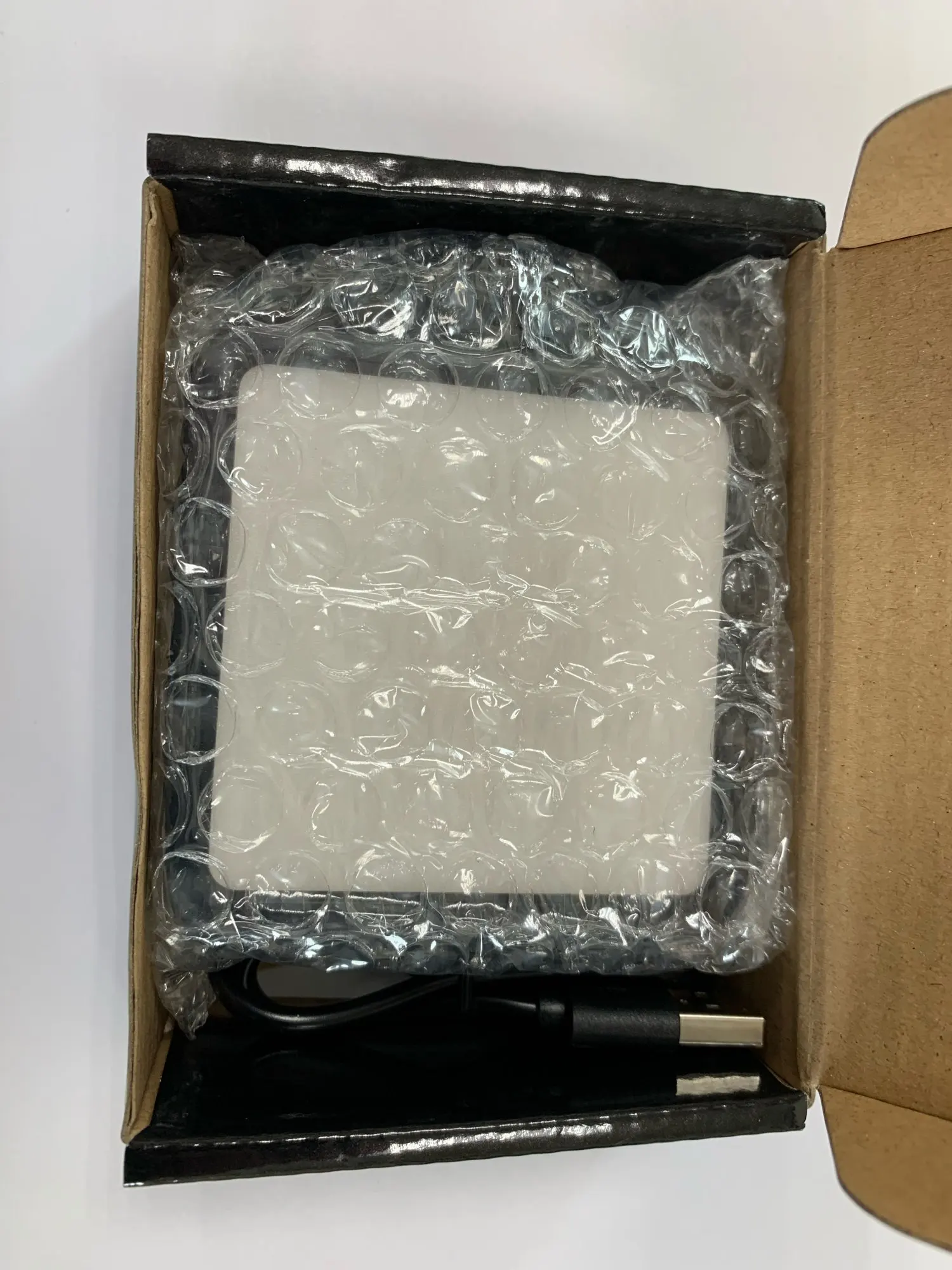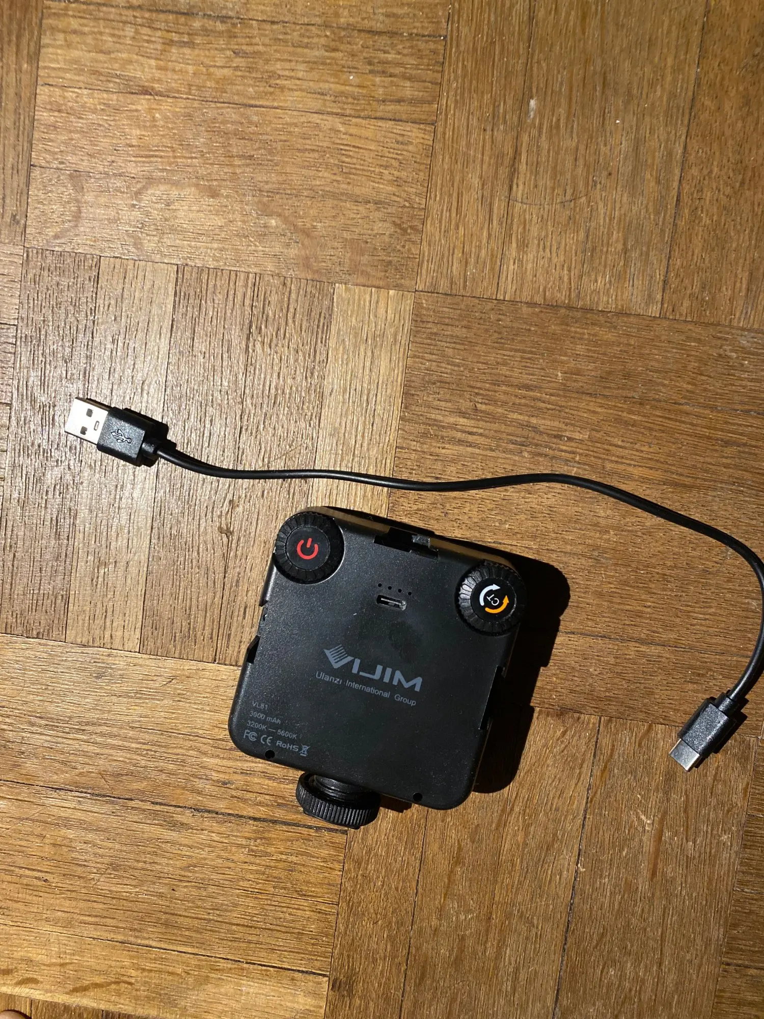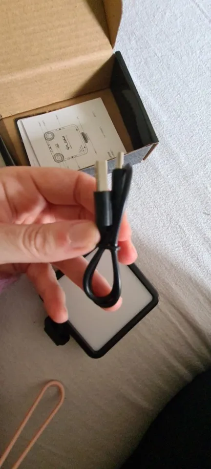 Он легкий и выглядит солидно Однако использование ручек для яркости и температуры света вводит в заблуждение. Это только переключатель включения/выключения для включения или выключения (невозможно поставить яркость на 50%. Для температуры это то же самое, либо тепло, либо холодно. Прибыл пустой аккумулятор, но работает через 1 минуту зарядки или с подключенным кабелем usb-c.