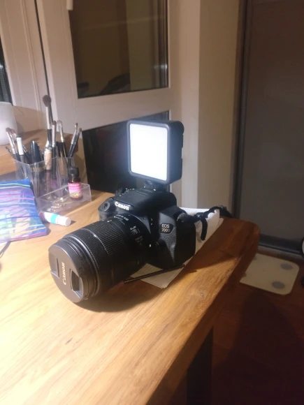 Товар превзошел мои ожидания. Работает от собственного аккумулятора. Легко встал в гнездо фотокамеры sony alfa. Светит ярко теплым и холодным светом, Регулирование температурой освещения плавное, не дискретное. Это очень понравилось, можно выбирать любую температуру освещения. Включается тоже очень быстро. Мини светильник прост в работе. Прилагаю фото.