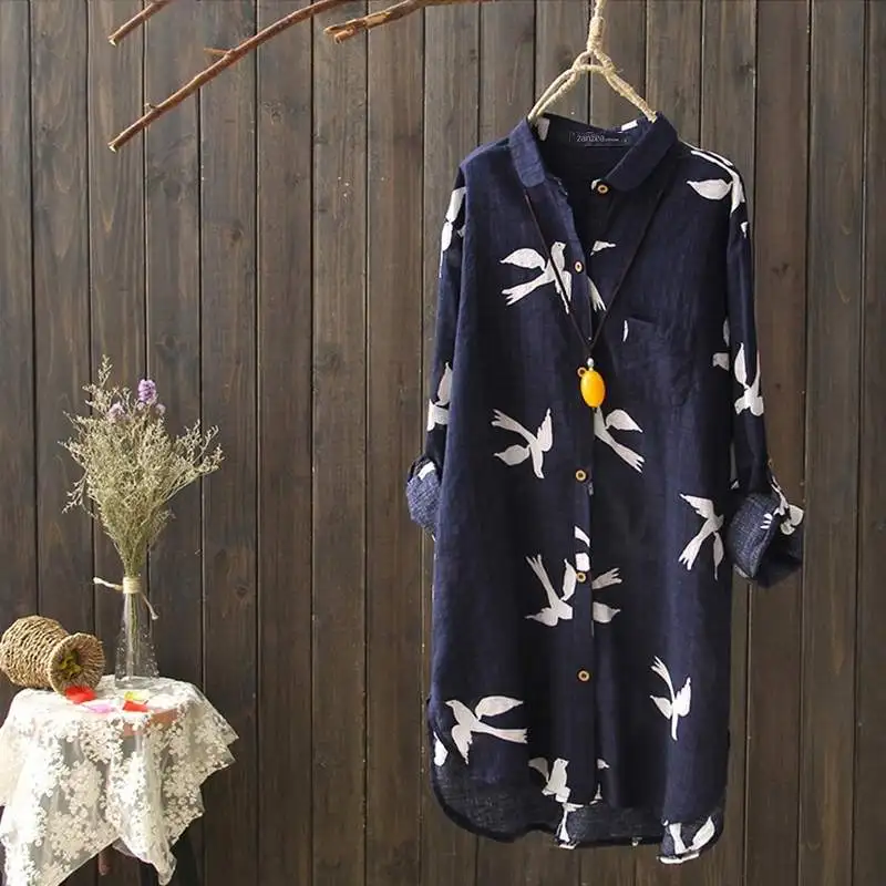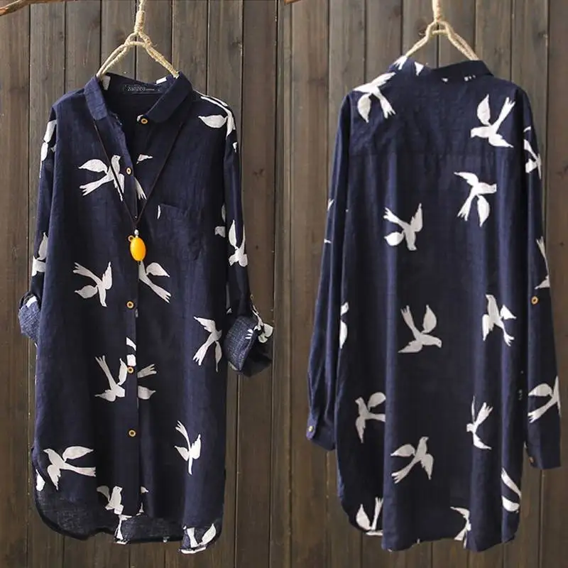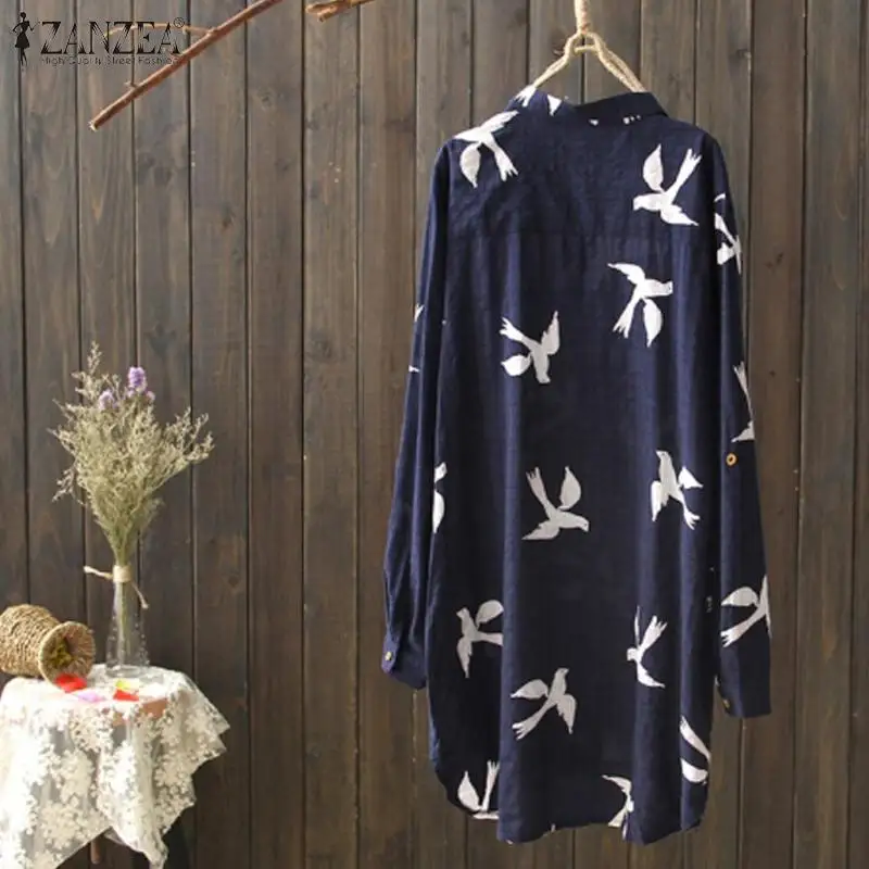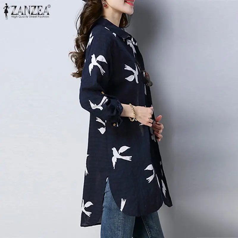 Осень 2022, блузка с принтом ZANZEA, повседневные рубашки с длинным рукавом, Женский Асимметричный кафтан с отворотом, женские блузы, Длинные Топы, туника, Халат
