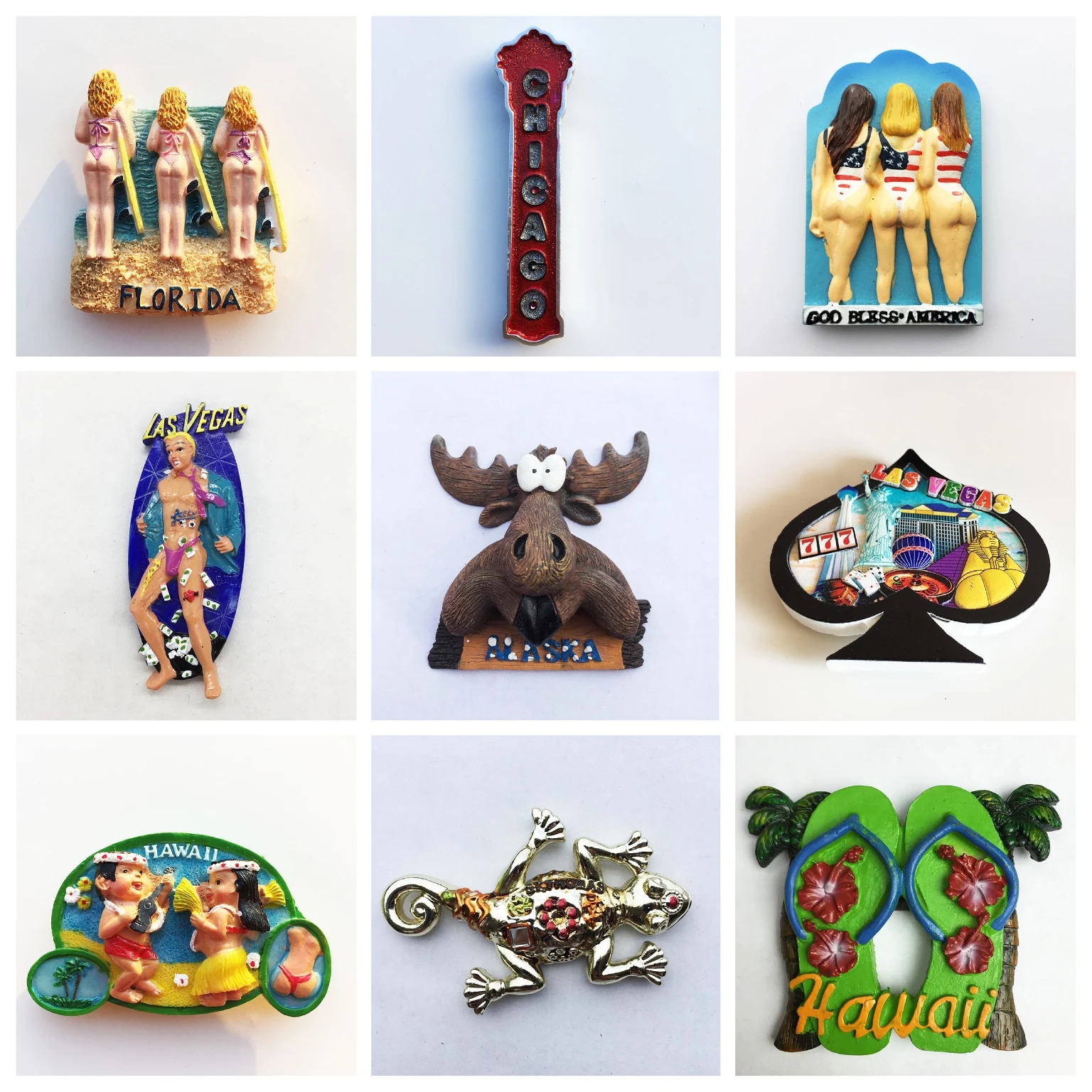 Сувенирные магниты для холодильника Alaska, Гавайи, Гавайи, Чикаго, США, туристические наклейки на холодильник, кухонные украшения, изделия из смолы, подарочные идеи