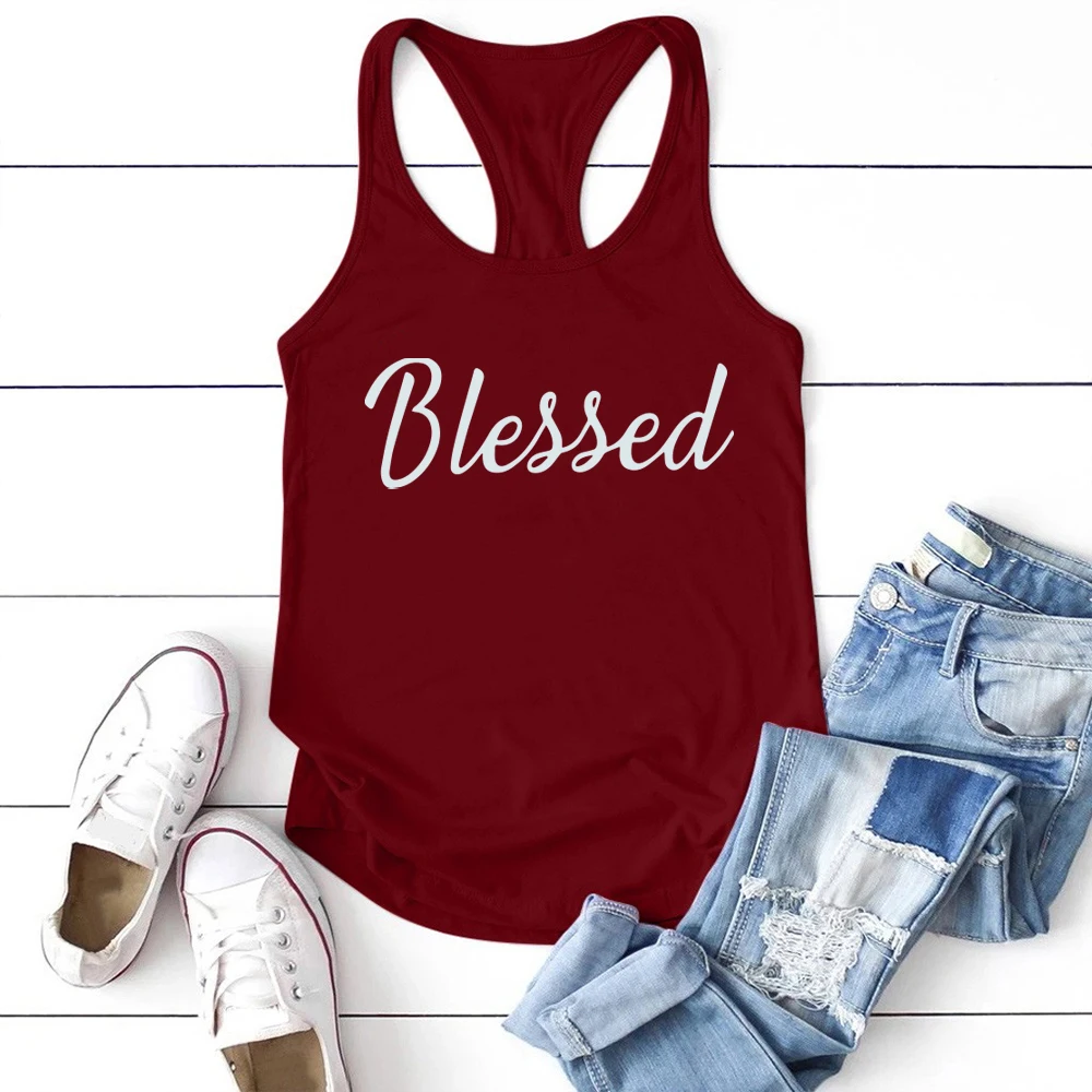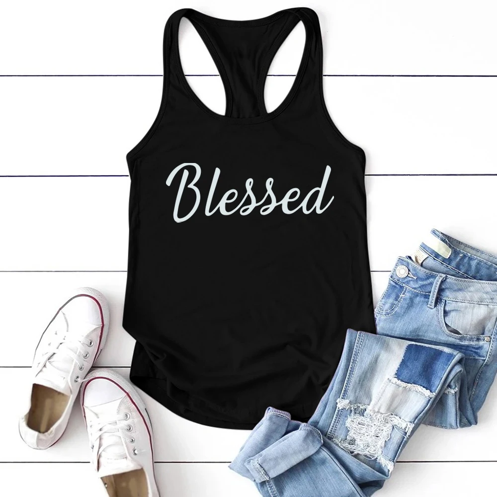 Женский Повседневный Топ без рукавов с принтом Blessed, Летний жилет с круглым вырезом размера плюс, 2020