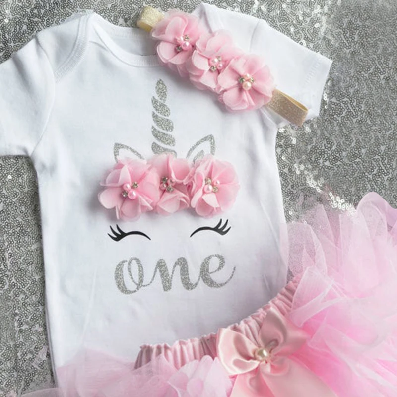 Один день рождения платья наряды на 1 год девочка крестины юбка-пачка платье для новорожденного 1 день рождения 3 шт Крещение Одежда