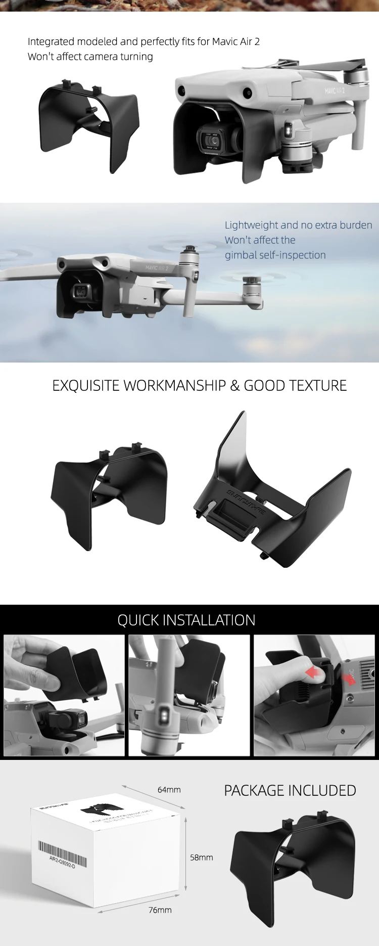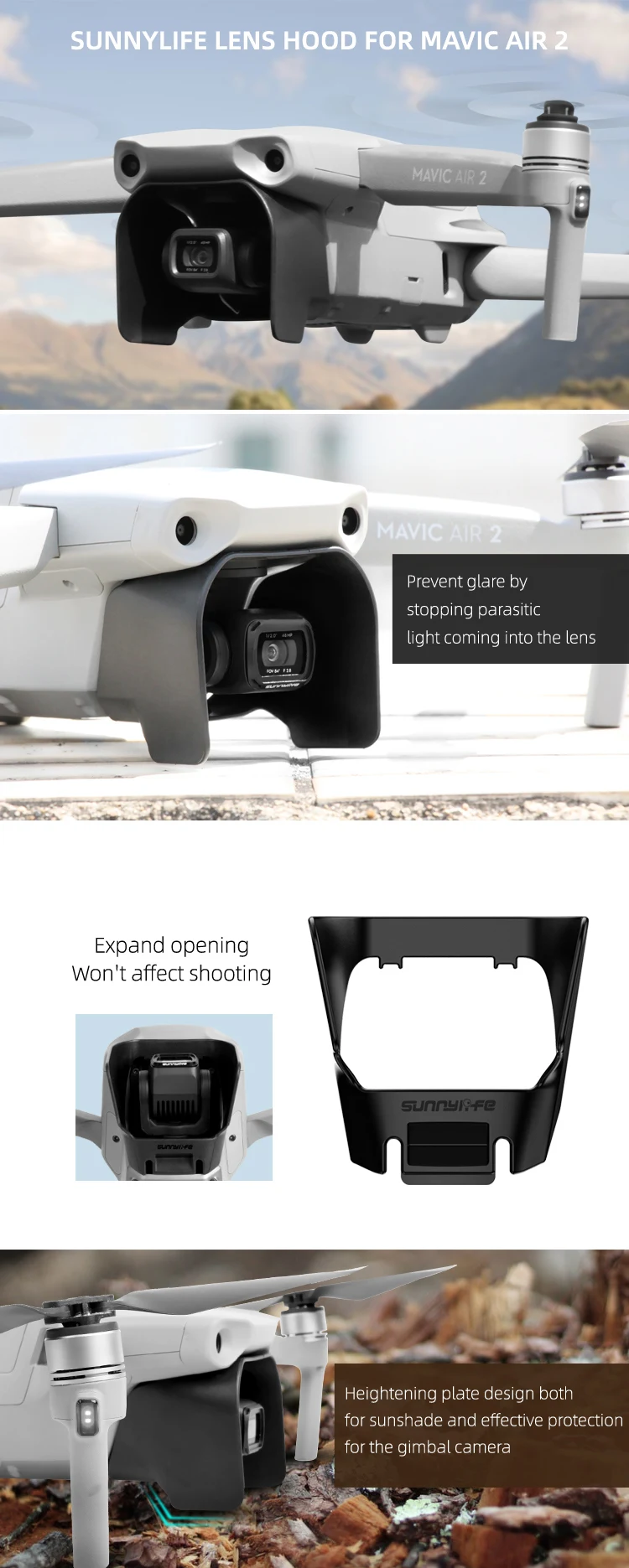 Sunnylife dji Mavic Air 2 аксессуары шасси ножки пропеллера фиксатор объектива Солнцезащитная крышка
