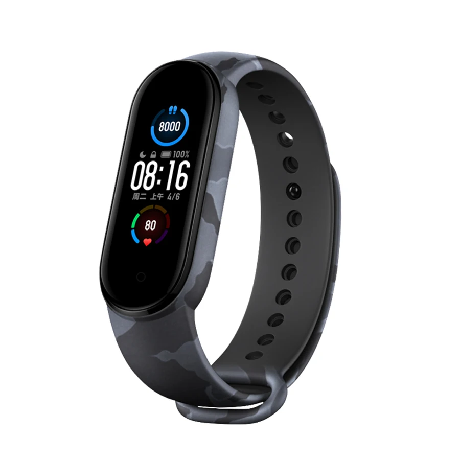 100 шт.упак. ремешок для Xiaomi Mi Band 5 браслеты камуфляж силикон...