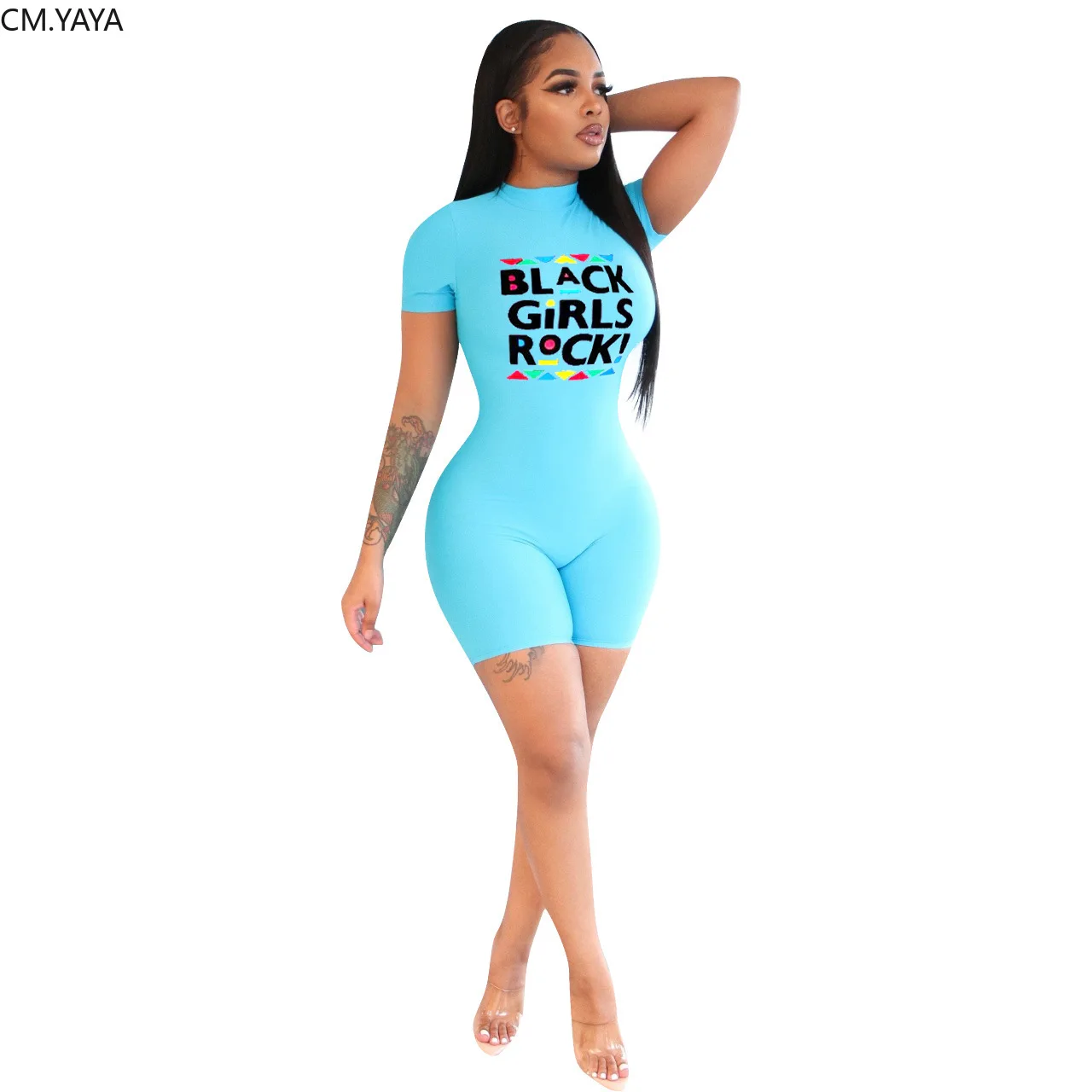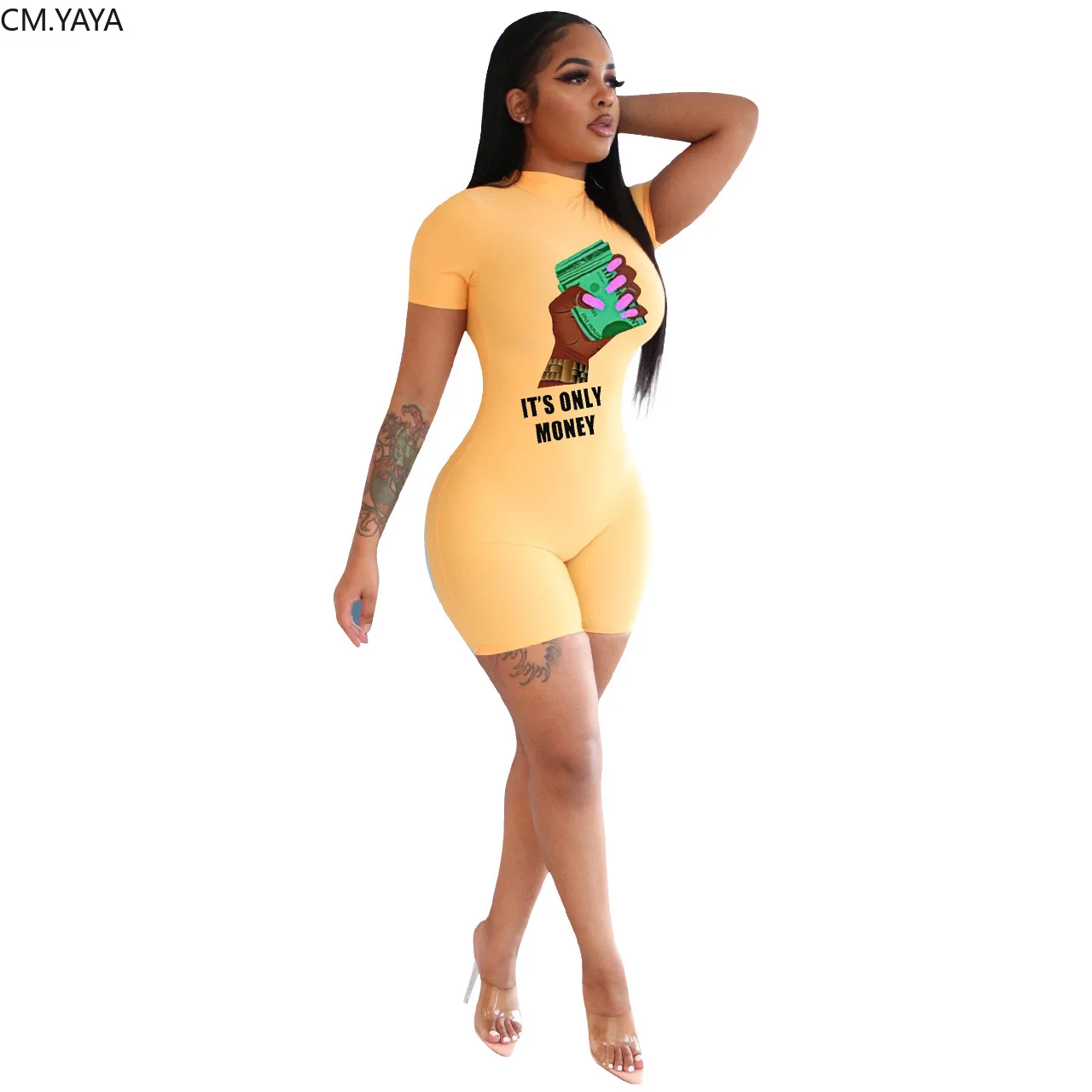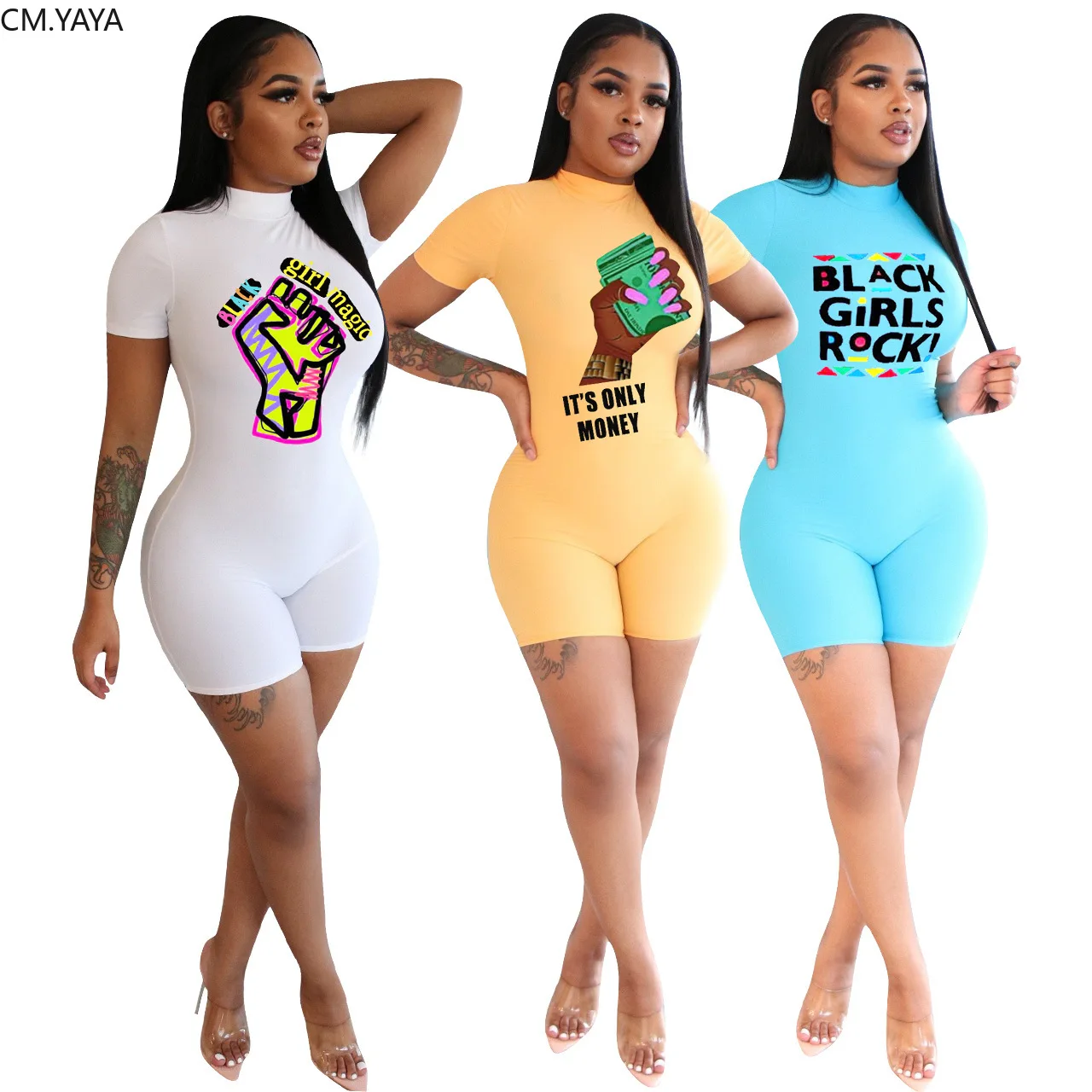 Женский комбинезон с коротким рукавом CM.YAYA, черный облегающий комбинезон с принтом волшебного кулака, цельный комбинезон для клуба