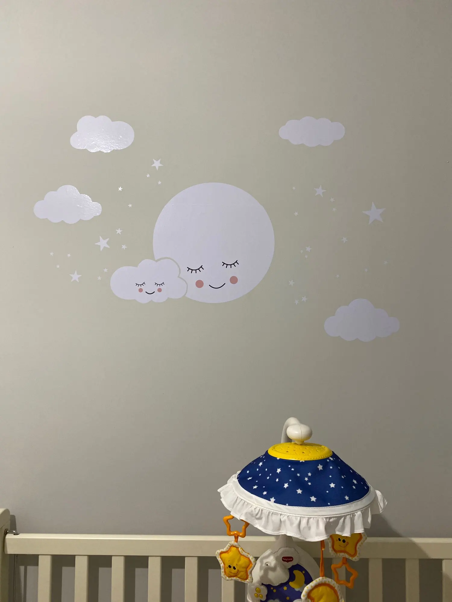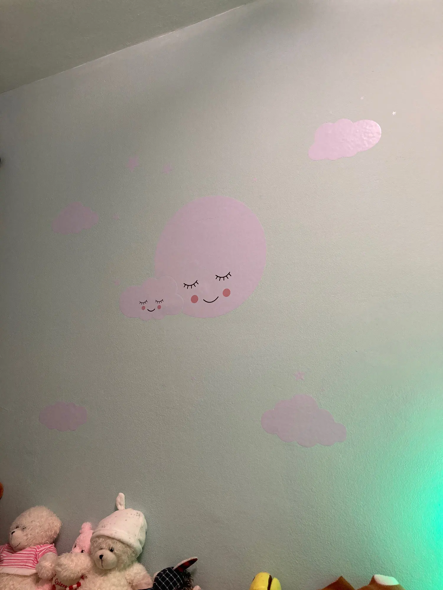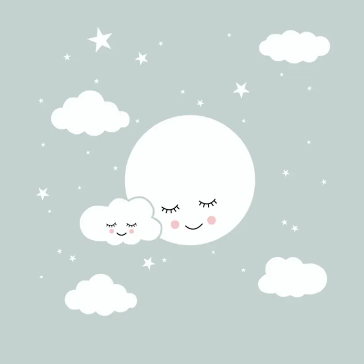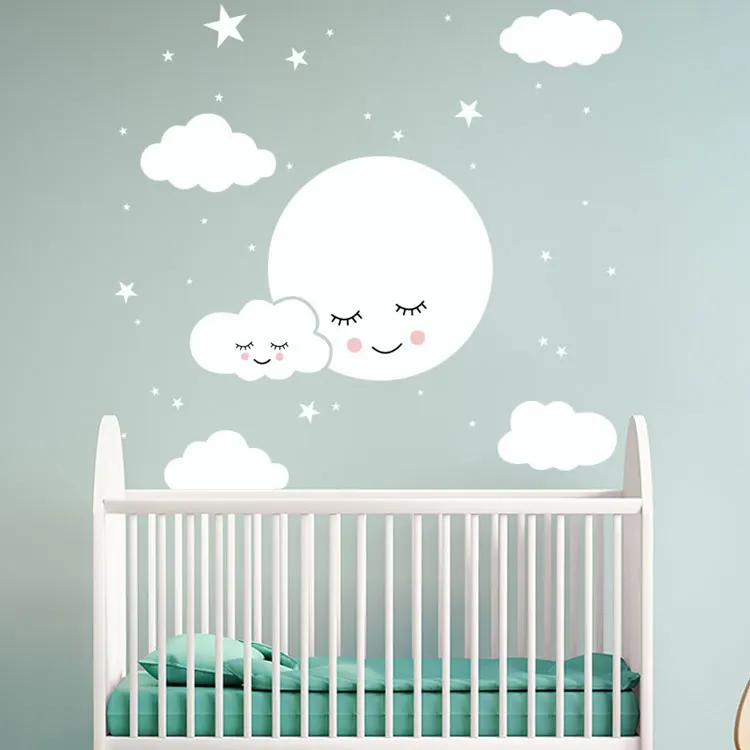 Наклейка на стену в виде смайлика, облака, звезд, белого цвета
