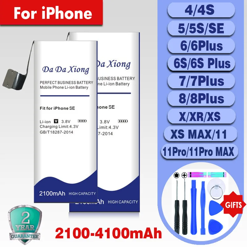 2022 аккумулятор большой емкости для iPhone 6, 6S, 7, 8 Plus, X, XR, Xs Max, сменный внутренний телефон 5 фотоэлементов