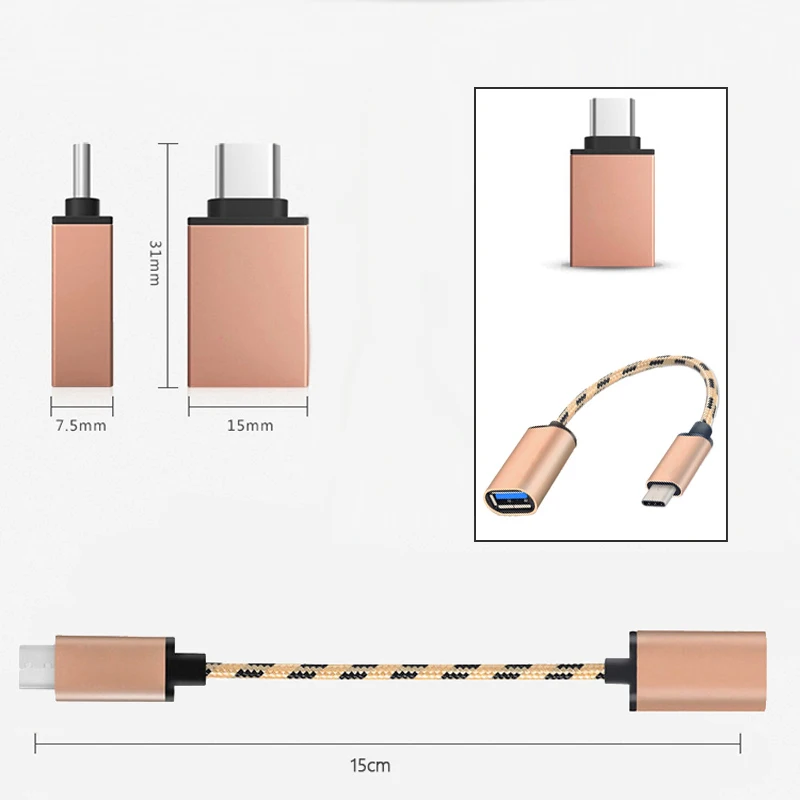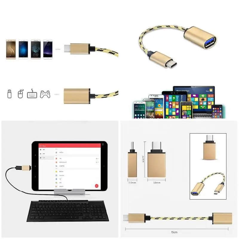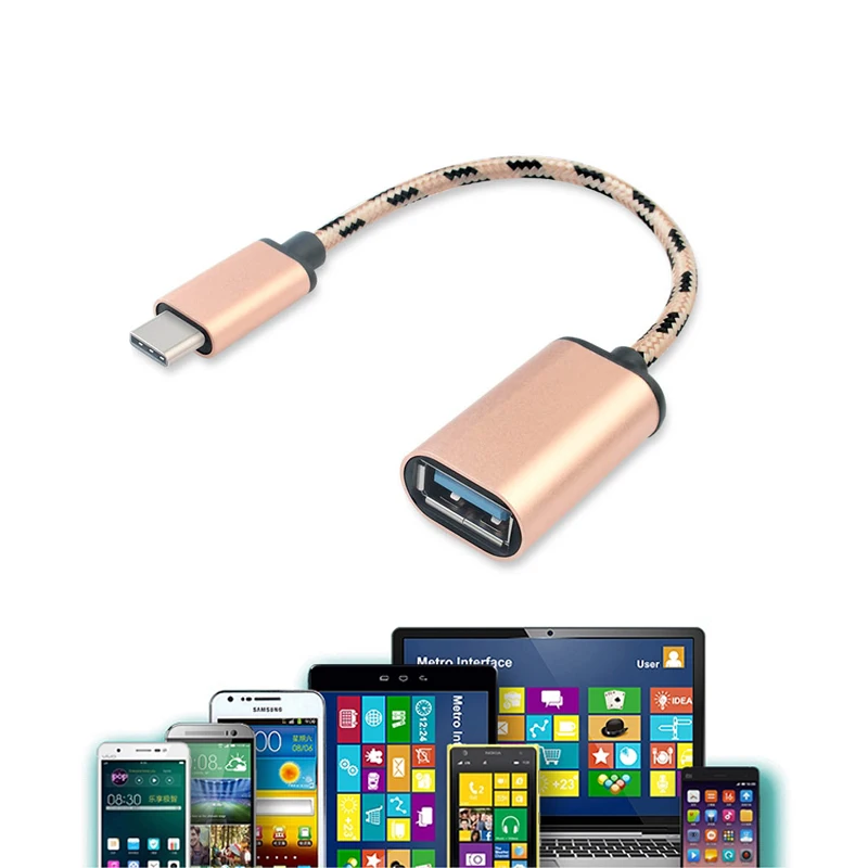 Новый Type-C мужчина к USB 3,1 Женский OTG Золотой Плетеный Кабель-адаптер конвертер NK-Shopping