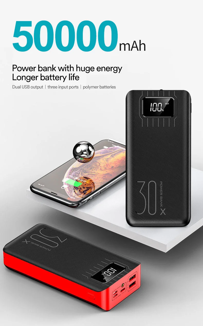 Внешний аккумулятор на 50000 мА ч с поддержкой быстрой зарядки