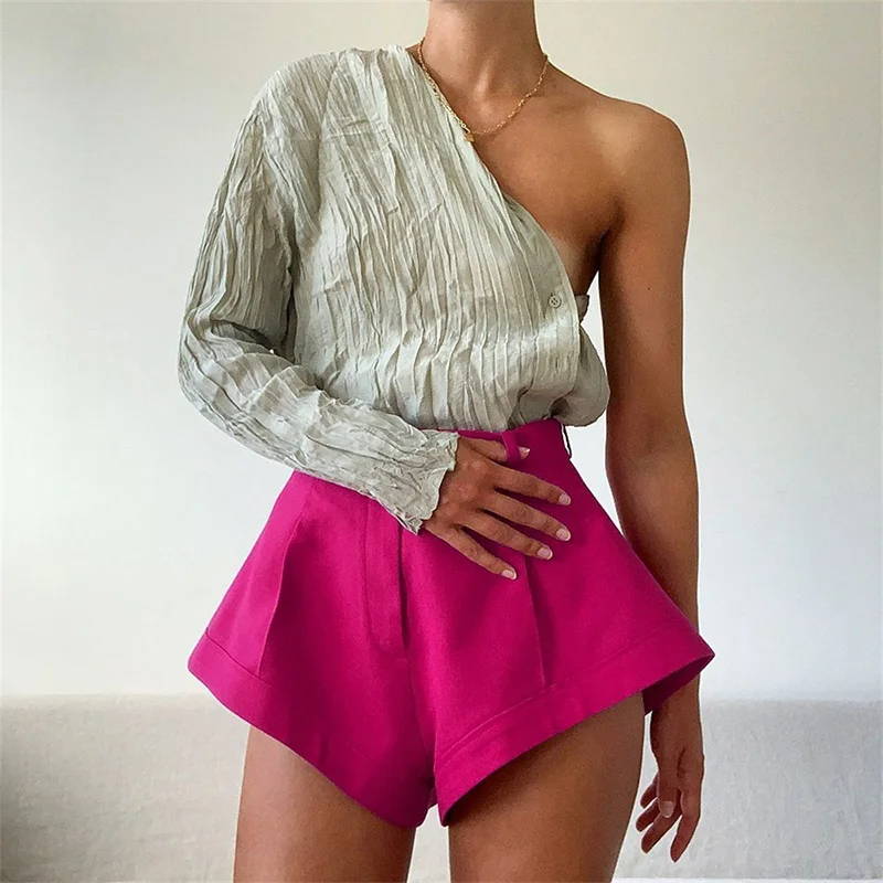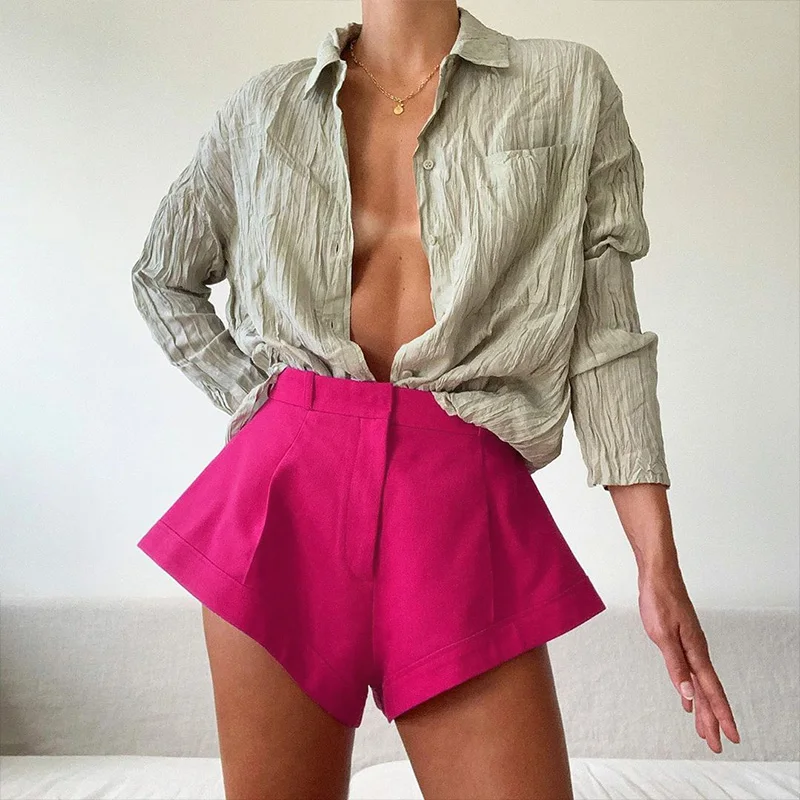Шорты WannaThis женские с завышенной талией, свободные модные однотонные Мини-шорты, пикантная модная одежда для отпуска, летние