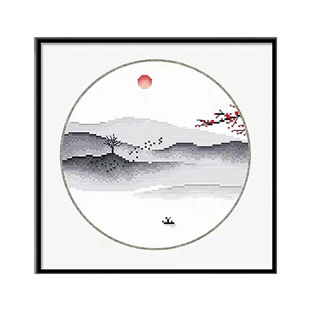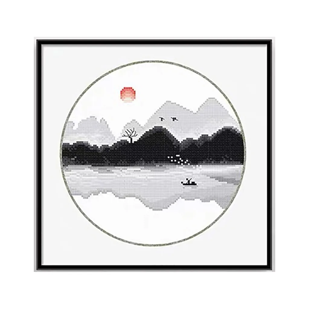 Акварельная азиатская китайская живопись, горы, озеро, пейзаж, Набор для вышивки крестом, набор для рукоделия