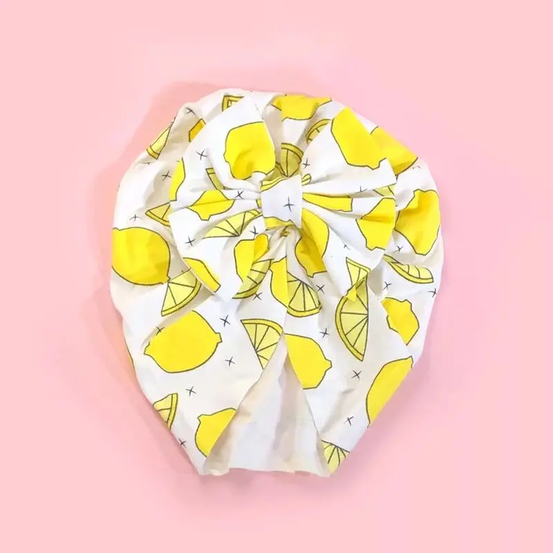 Детская шапка-тюрбан с лимономв горошекв полоску, шапки, реквизит для фотосъемки младенцев, эластичная Милая шапка с бантом для волос, Детские аксессуары
