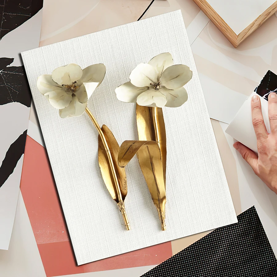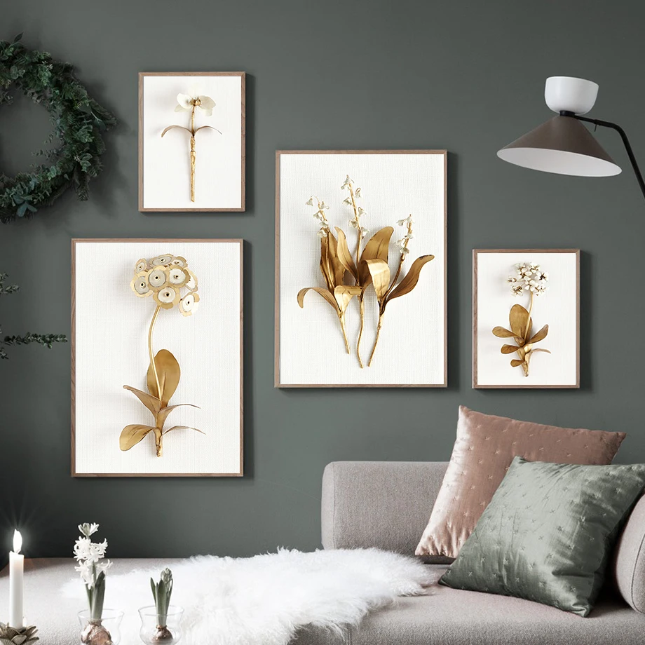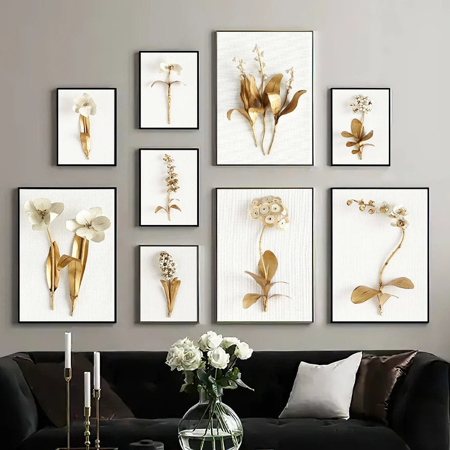 Золотые растения DDHH, листья и цветы, настенная живопись, картина ...
