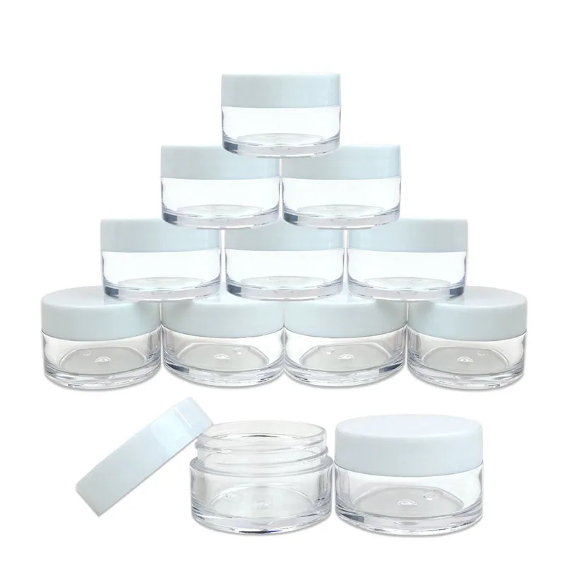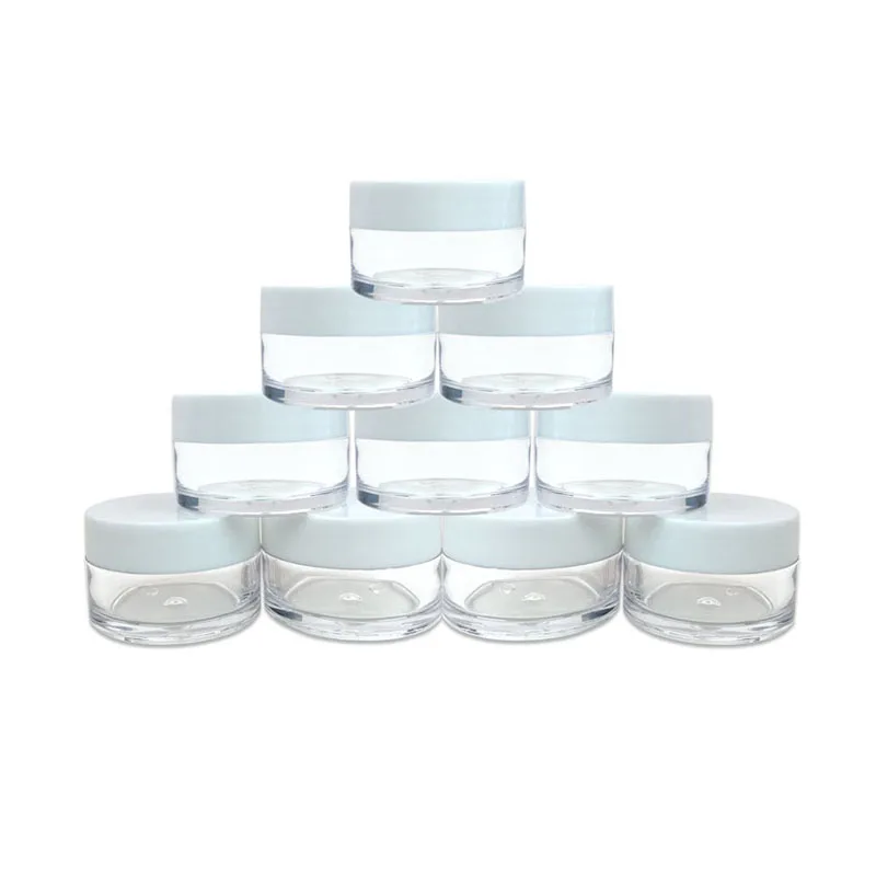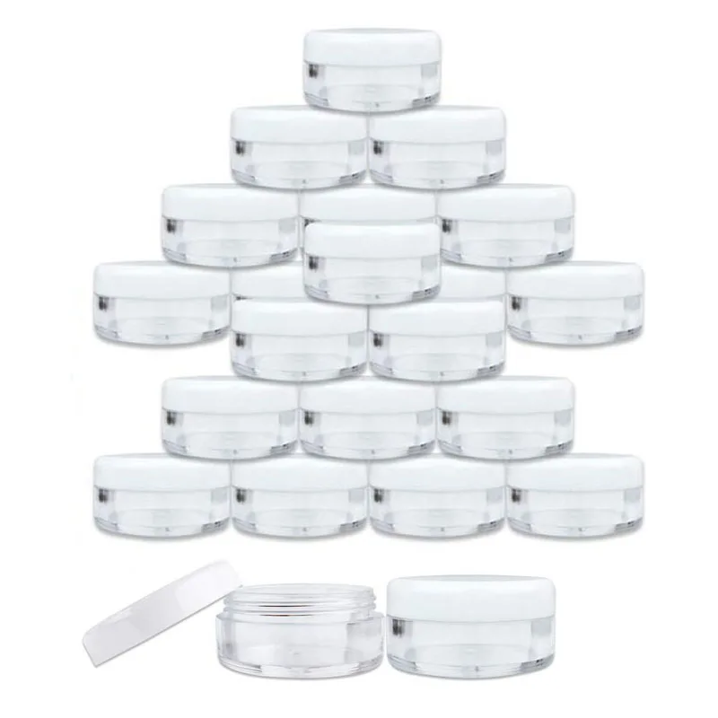 Пустые пластиковые баночки для косметики, 100 шт., 2 г, 3 г, 10 г, 1 г, 20 г, прозрачные баночки с белыми крышками, флаконы для теней, макияжа, крема, бальзама для губ, контейнеры для макияжа