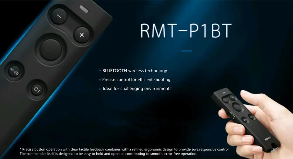 RMT-P1BT обеспечивает надежную работу, необходимую в профессиональных условиях работы, с прочным подключением по Bluetooth и позитивным реагирующим кнопочным управлением. Поскольку коммуникация является скорее беспроводной, а не оптической, полная надежность и отклик доступны даже в ситуациях, когда линия видимости закрыта.
