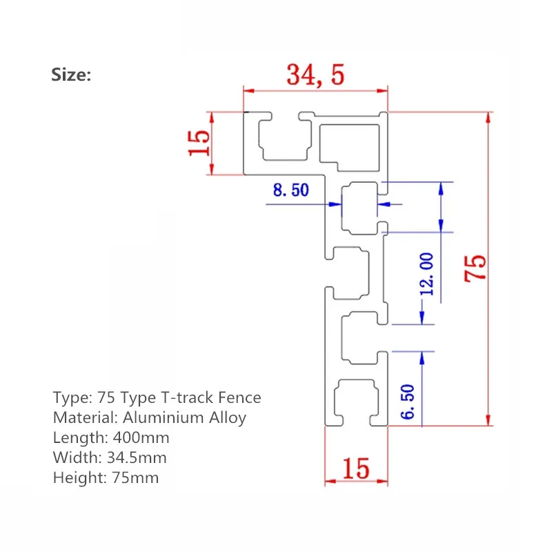 Профиль используется для ограждений и разных видов деревообрабатывающих проектов, таких как ЧПУ, Настольная пила, фрезерный стол и т. д. Износостойкость, атмосферостойкость и устойчивость к коррозии. Прочный и удобный в использовании. Материал: алюминиевый сплав 6061 Для: Т-образных пазов, Т-образных дорожек, забора Длина: 400 мм Высота: 75 мм Как показано на рисунке Посылка включает: 1 * Т-образный забор (Другие детали не включены!)