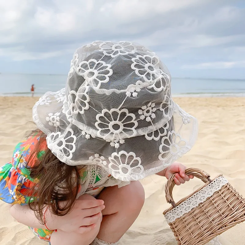 2021 кружевное детское ведро шляпа летнее платье принцессы с цветами; Детская шапочка для пляжная сумка для девочек детские шляпы от солнца кепки