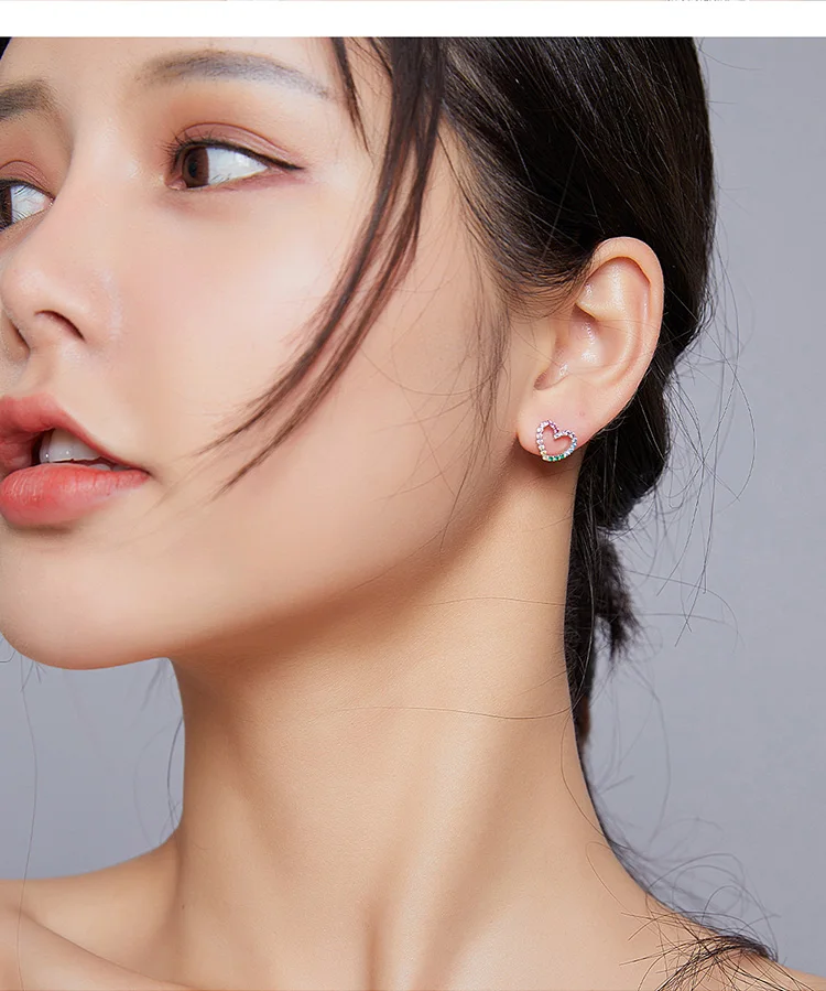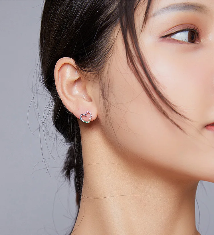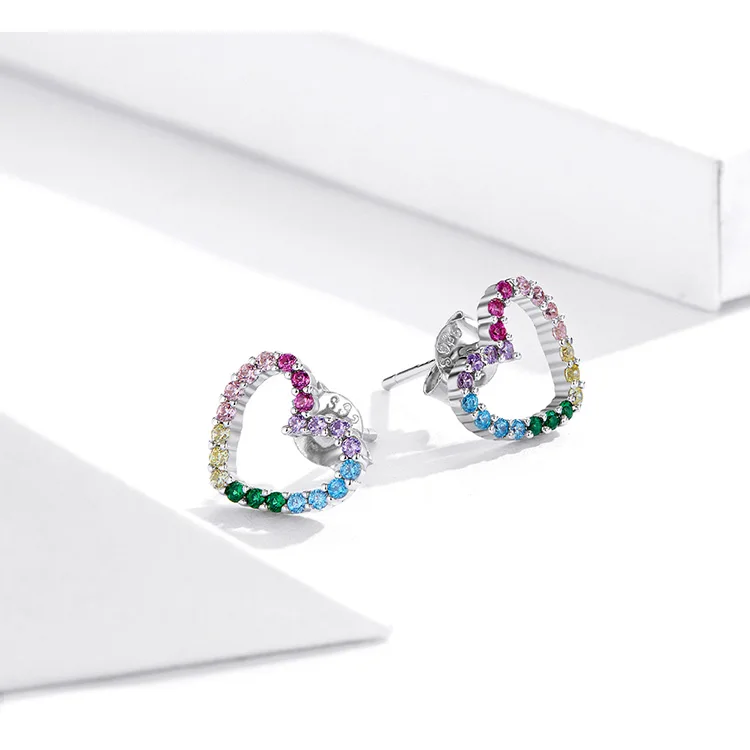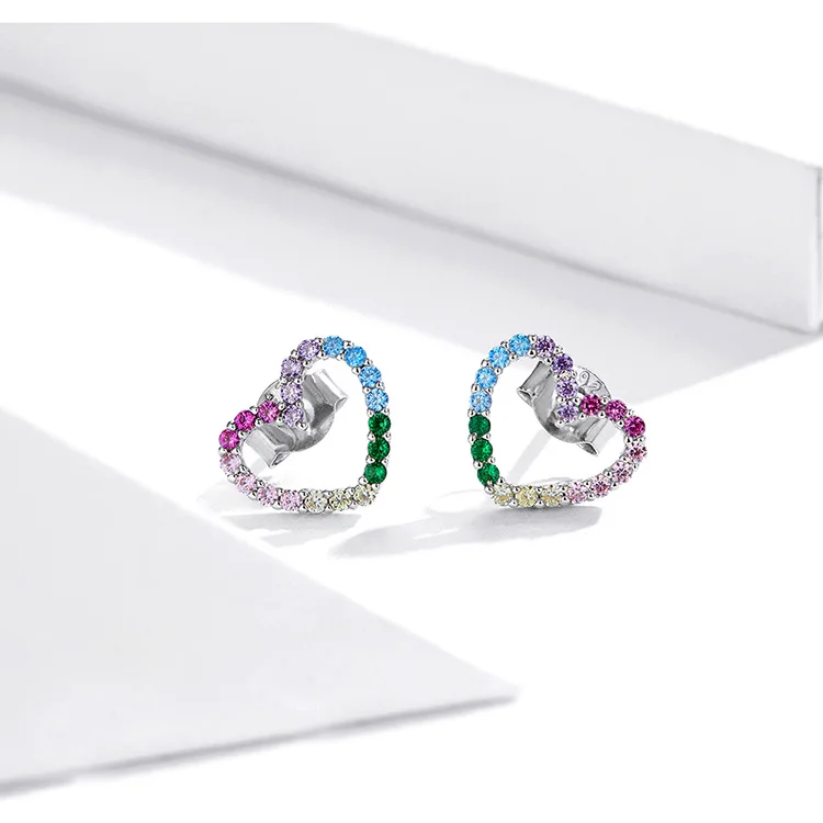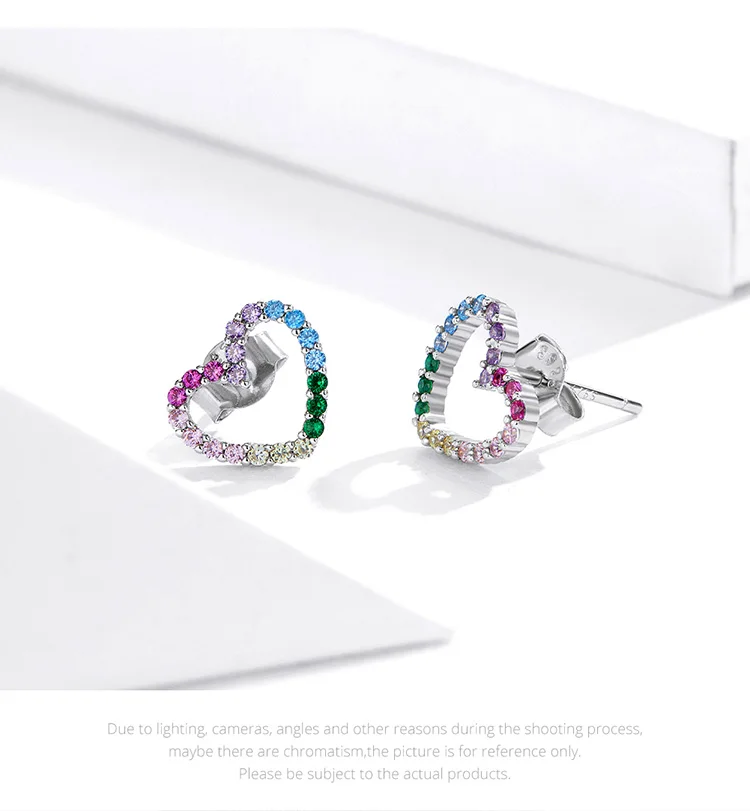 bamoer женские серьги-гвоздики "Радужное сердце"изготовления из сер...