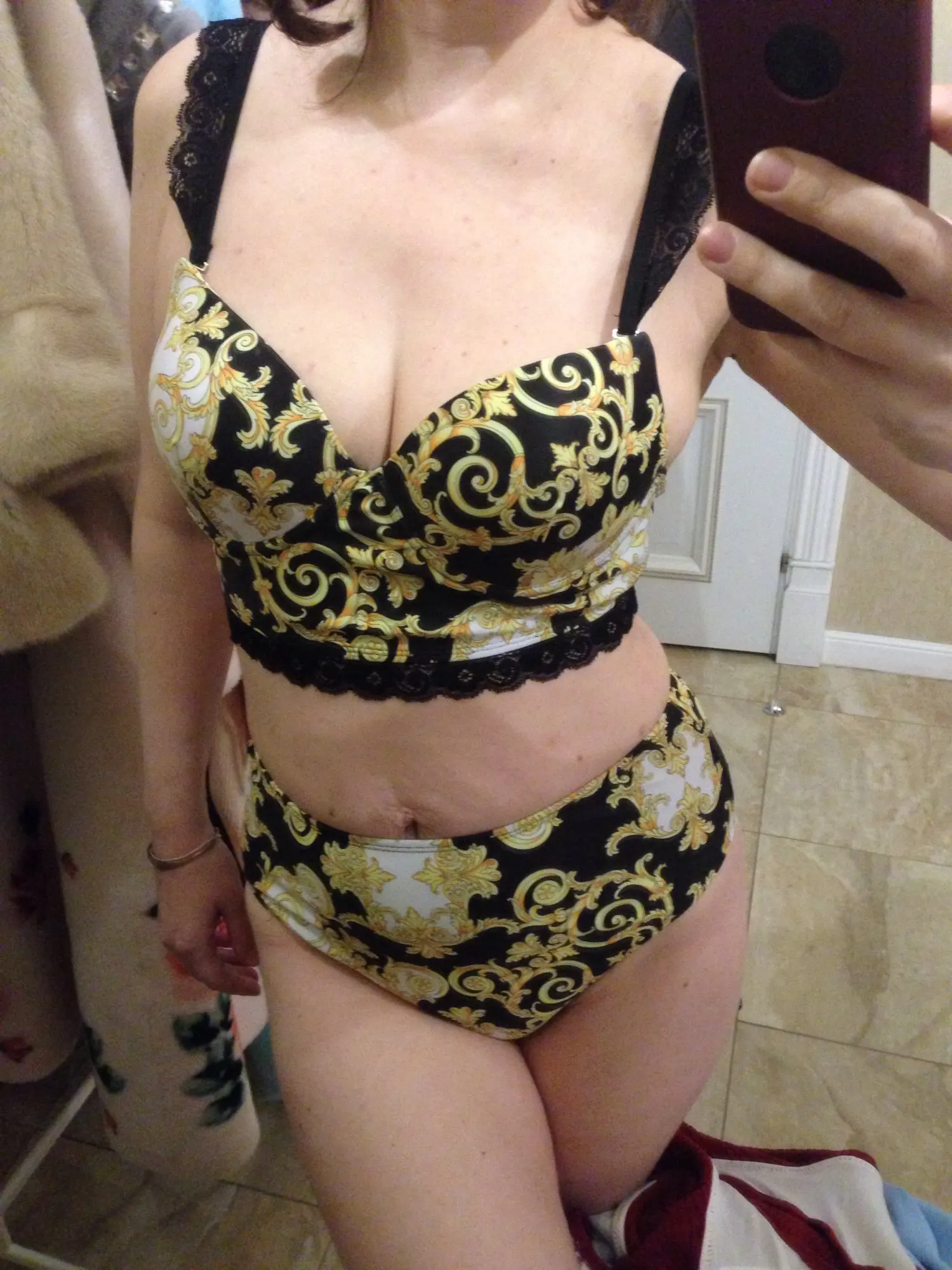 Сначала недовольна была чашечками. Совсем не поддерживает грудь (3й размер). Пока ходила по дому, нагнулась - и грудь не вылетела (обладатели большой груди поймут). Так что все идеально. Свой размер S, из за размера груди взяла М, все хорошо село. И плавки и купальник